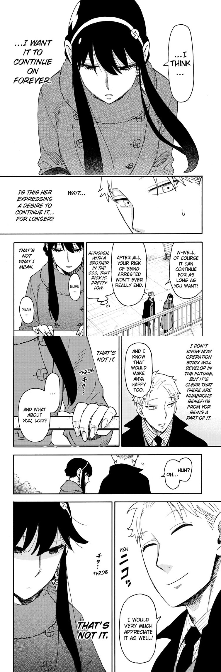 Sooo Yor is becoming more obvious with her feelings and Loid is becoming aware of his but is forcing them down?