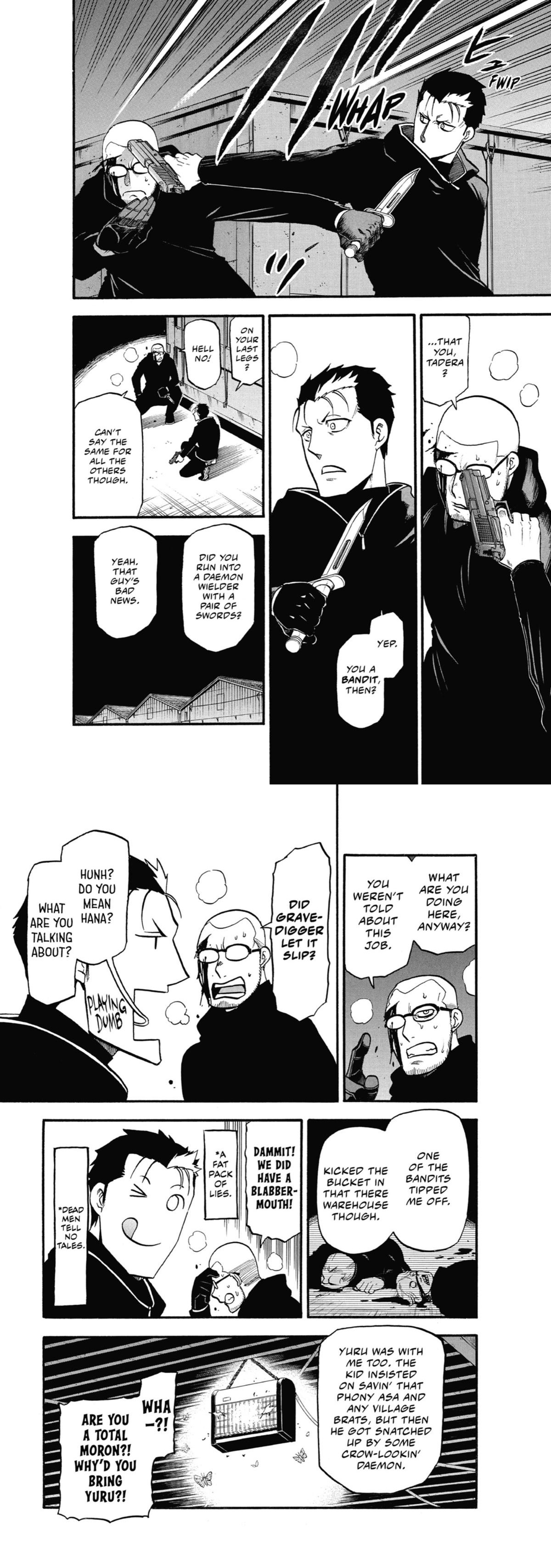 >>287466413>We have this 400-year-old blood feud and in-between murdering each other over it, the characters have tea and banter, despite it being their entire motivationThe tonal whiplash is honestly very weird here as even FMA/Silver spoon didn't run into it as much as YnT, it genuinely filters me from enjoying the manga at times because the mangaka presents (You) a serious story that as a reader you want to take seriously but the characters are not taking it seriously enough.I don't hate the manga, but these shenanigans make it difficult to truly love aside from the siblings and their goal.