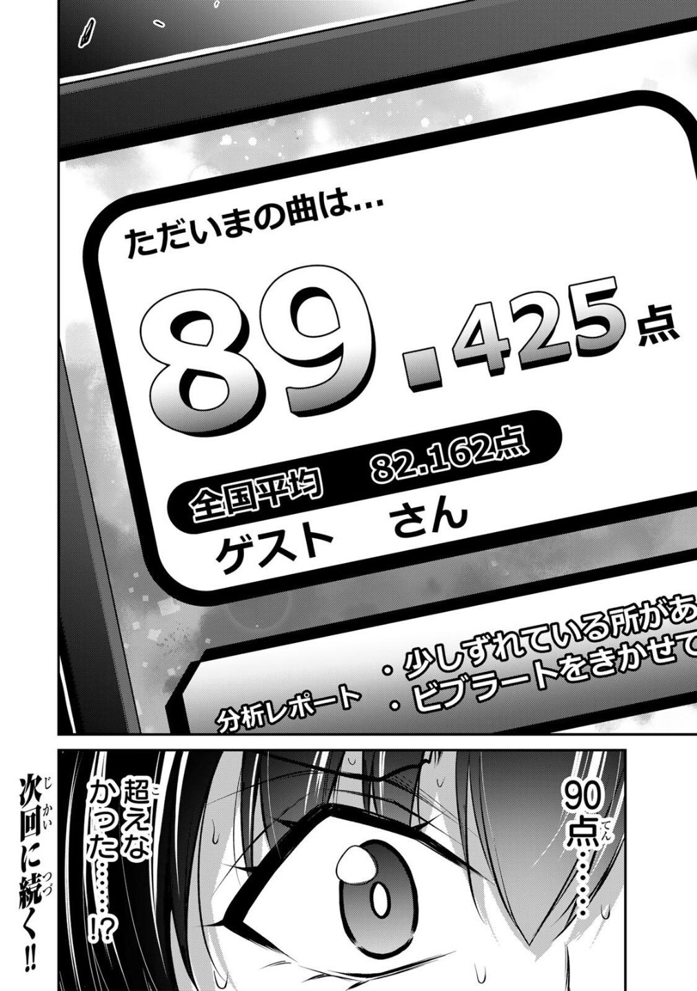 >>287425470>The song you just performed...>89.425 points>National average: 82.162 points>Guest analysis report:>・There were some spots where you were slightly off>・You didn't put enough vibrato>I didn't...>get over 90...!?Chapter end.As usual, don't post this MTL outside this thread without some heavy revision.