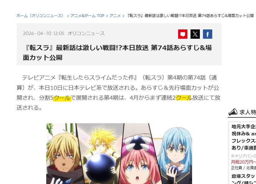 >>287458054>Tensura's 4th season will being in April 2026 and will air till winter 2027Why do you insist on splitting a single season into these tiny pieces as if it matters? These are all just parts that make up a single season. This is ridiculous. I am going to bed.