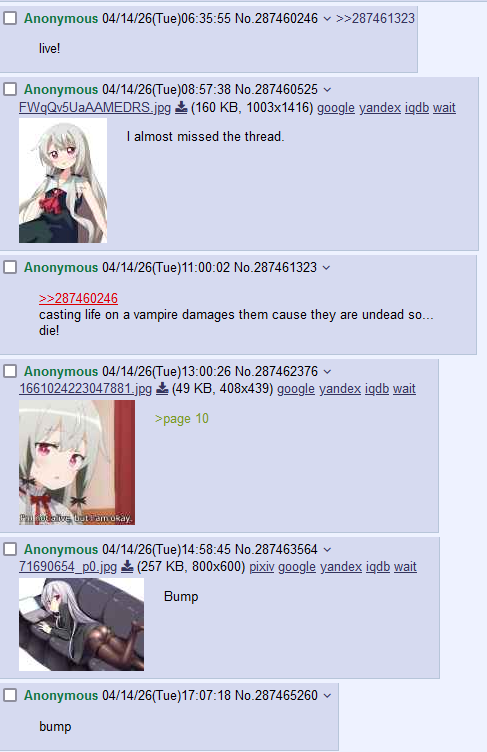 >>287468163just Let It Go. no need to become a zombified ritualposter on an already dying board.