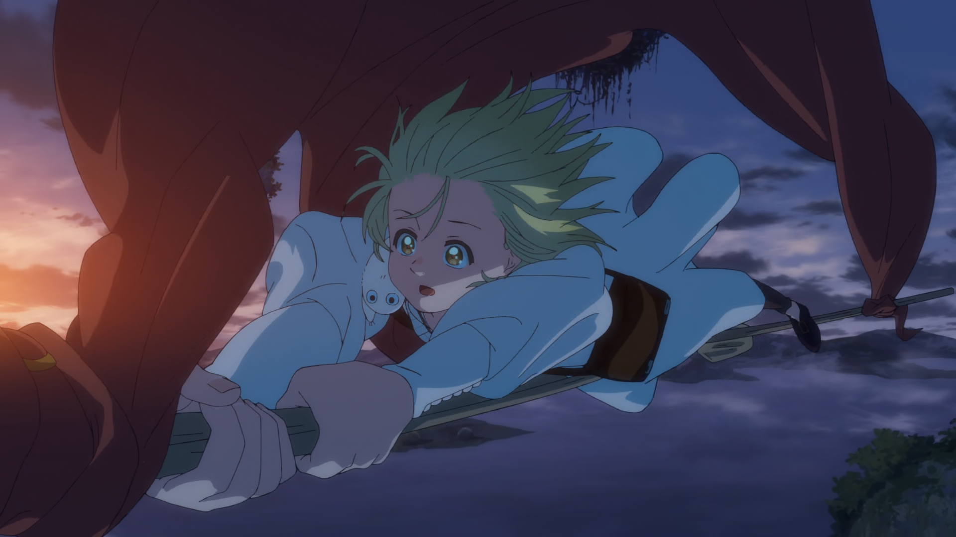 Chocolate sex?So she's dong the test at a super dangerous time. The master did tell her roommate to help guide her, makes sense she would want her to take the initial test.Takes a lot of skill to lean that far over and not fall down.Cute dork face plants right out of the gate. Lucky that glass orb didn't break.Double wing birds is a cool design. Like a scaled up dragon fly.Even whales have the double dorsal fin design. If that's a common evolutionary trait should humans have four arms?Cute pink dork.Black hair sure is a stick in the mud. She looks way better with long hair though.Cute mother and child moments. Too bad she's magic batman now that her parents are dead.A magic glider is a neat idea.Black hair is off to seethe.So why does she get a pass to be an apprentice without having done any of the tests? The series is beautifully animated.