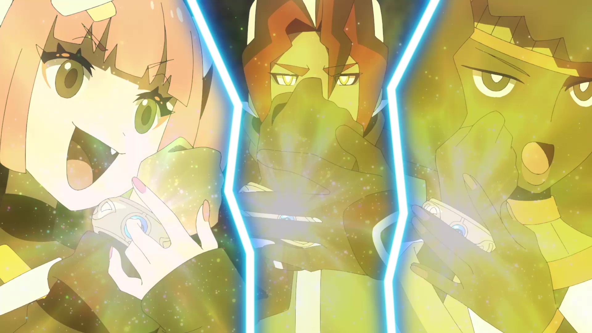 >Roy, Uruto and Friede duel against Sango, Onyx and Agate! But during this fierce see-saw battle of Mega Evolved Pokémon, Roy spots the key to victory! What is it?! Meanwhile, Liko and the others meet up with Amethio before finally reaching the central parts of Rakua... where they spot...?!