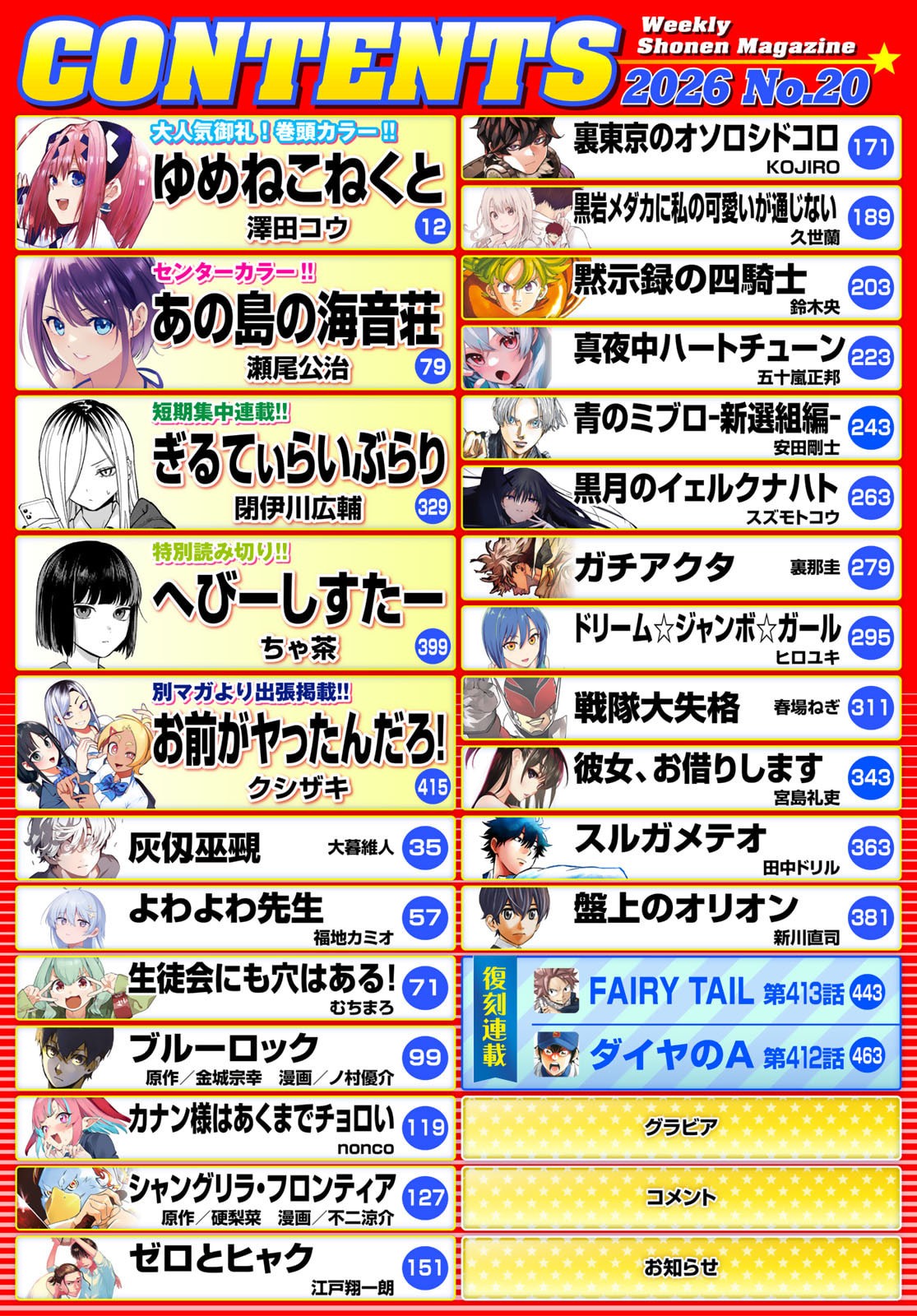 Issue no. 20, 2026Color pages for Yumene and Umine