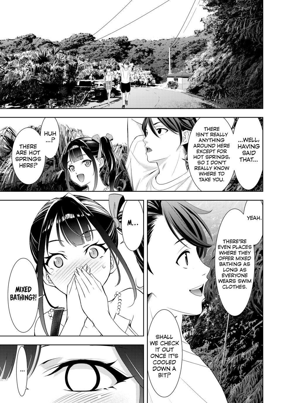 >>287464676Chapter 8. There's no reason they have to go there for it to happen. I'm sure if they do it won't go as planned. Someone else showing up to cause trouble, or someone not wearing anything either because of a mistake or intentionally.