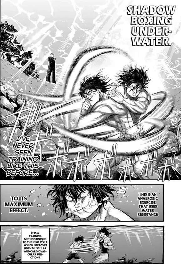 This page is my favourite moment in Kengan. You can tell Muteba had a lot of respects towards his opponents, something you won't see in Omega. Dare I say Muteba vs Seki is the best fight of the manga.