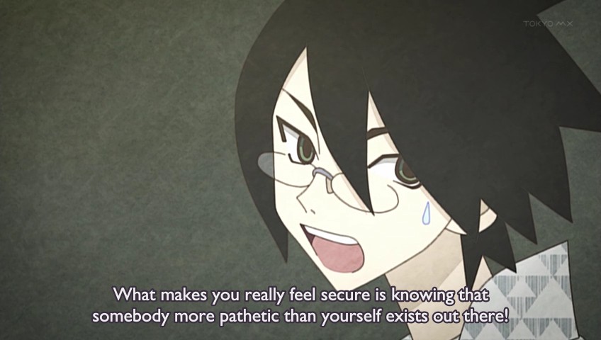 the anime have somewhat overlapping presentation styles but their core messages couldn't be more different."Carpe diem" vs "Some people are just fucked up and there's no helping it"Maybe SZS would be a better comparison.