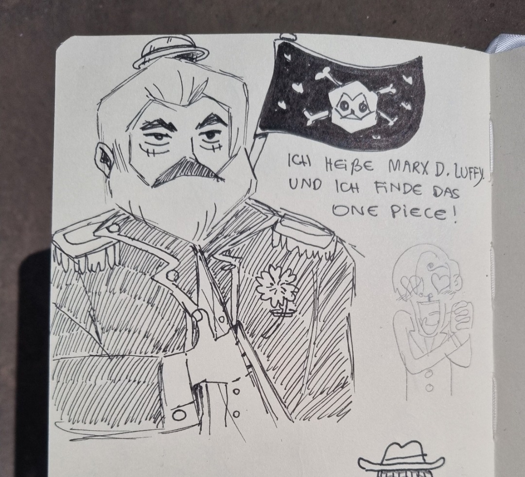 Actual Somalian pirate here. I stole some notebooks from Oda’s yacht. Most of them are just filled with ULTIULTIULTI in hundreds of distinct handwritings. Also joyboy is a time traveling usopp.