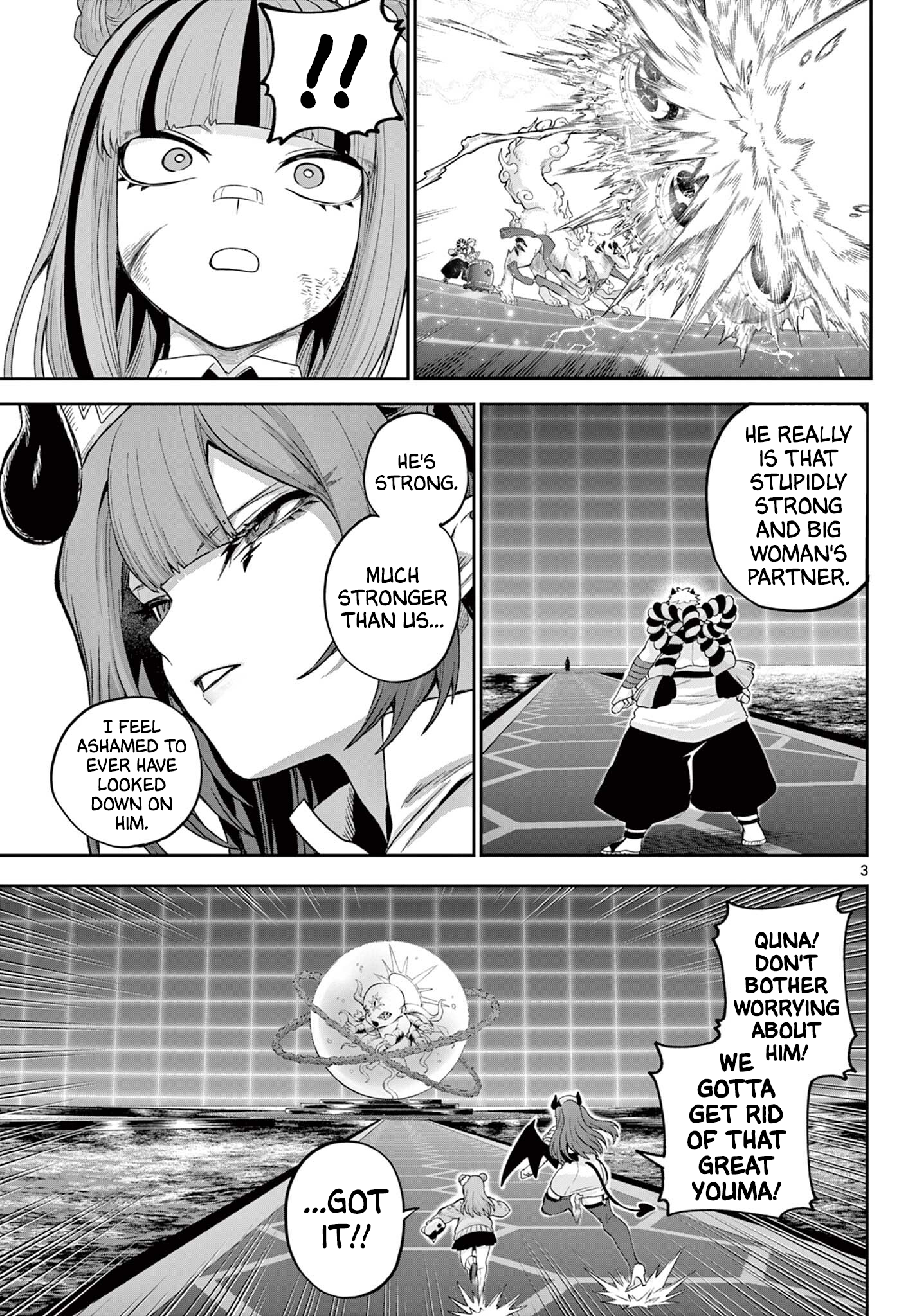 !!!*thwack*He fused with the Great Youma...!?That demented sicko...!The Youma it caught in its hand...*krik* x3*dool* x3are getting absorbed...!?