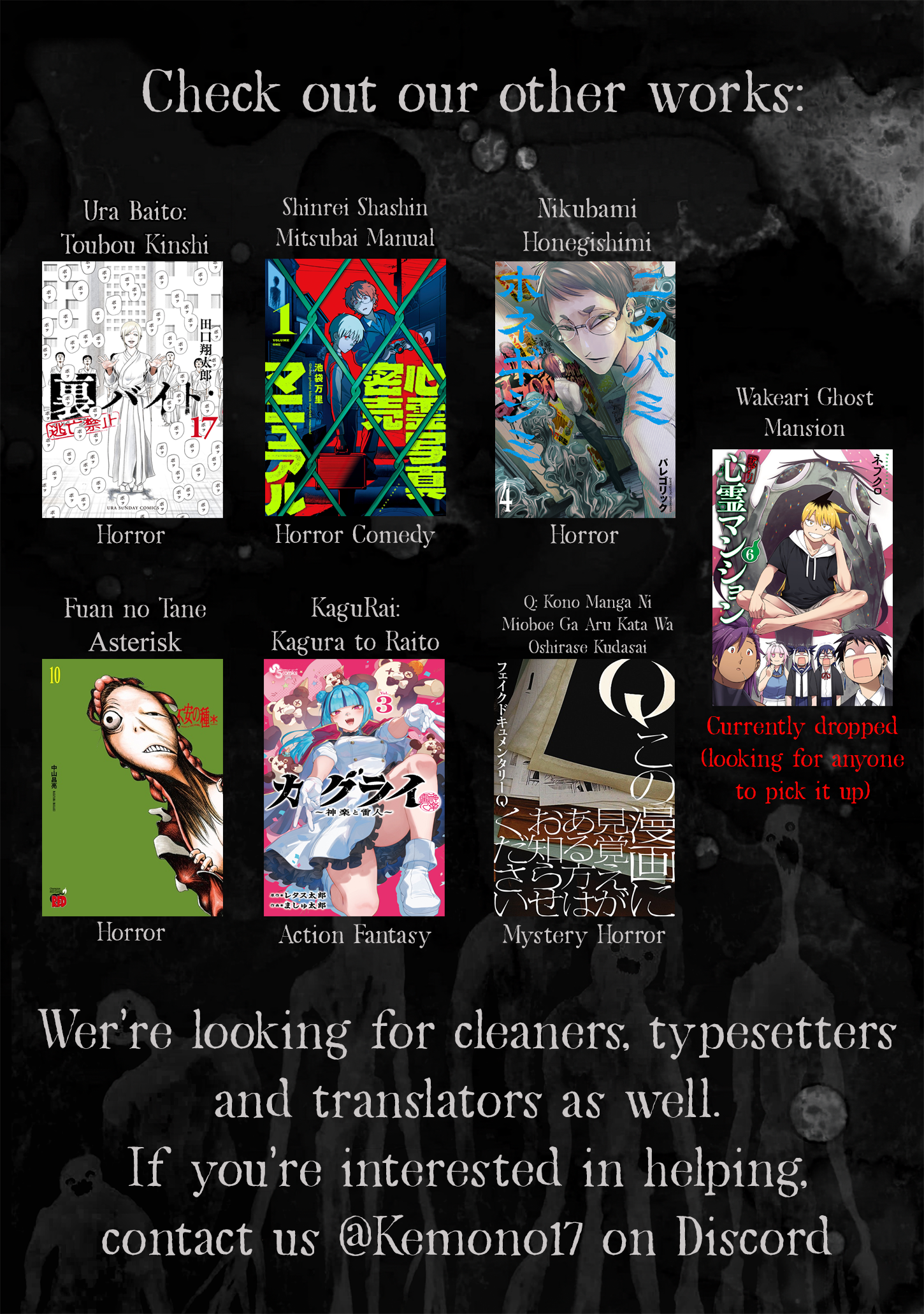 Our other series. Check them out if you find them look interesting (We might have a surprise for you soon)Also, we are always looking for volunteers to help in our work. If you can and want to help send us a DM to join.