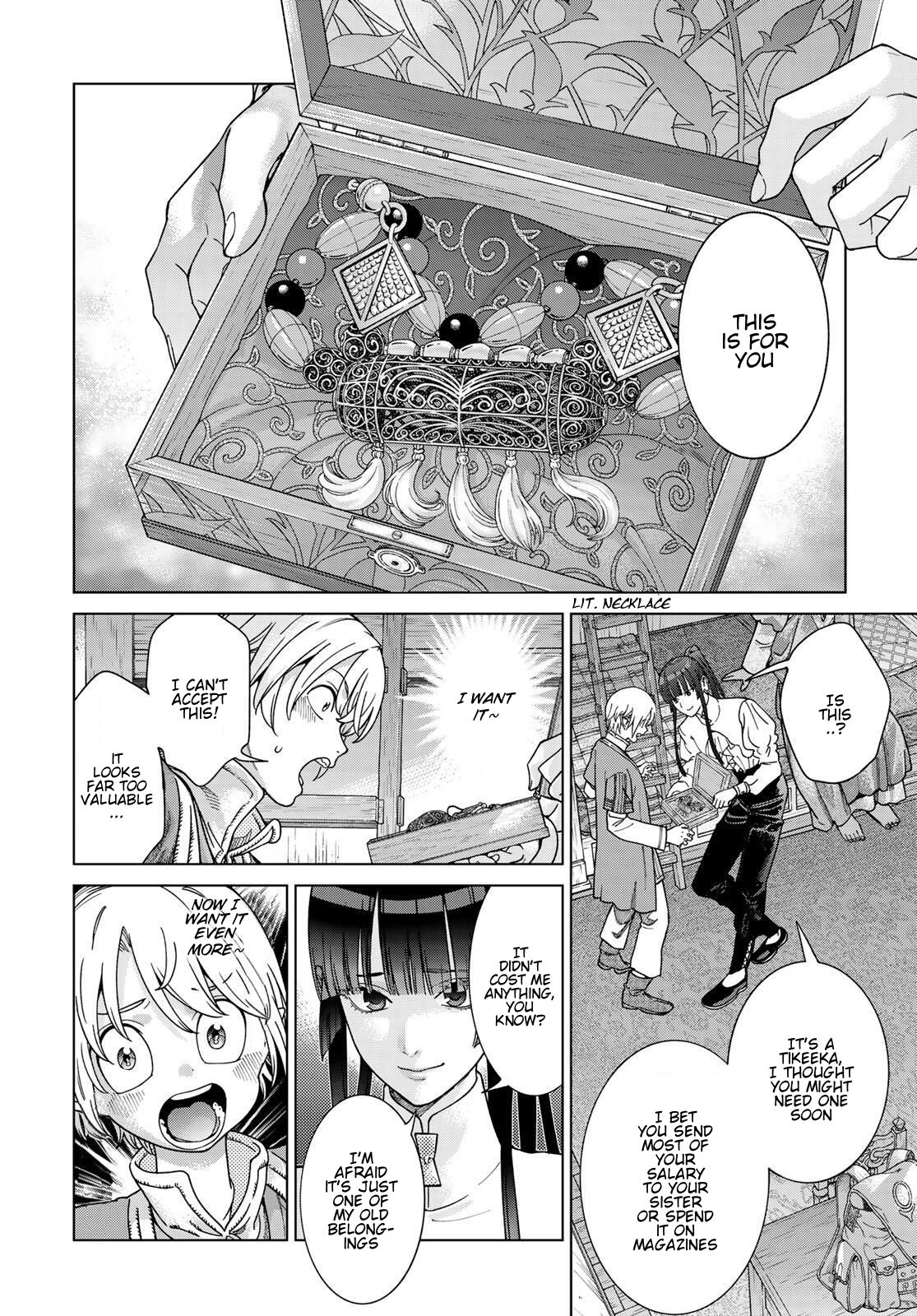>>287478083only from Vol 8 and newer. This is one of the few manga I bought physical because fan translations were in short supply. Art and world building are worth it.I wonder if the author likes fashion design, such detail is put into the costumes and jewelry.