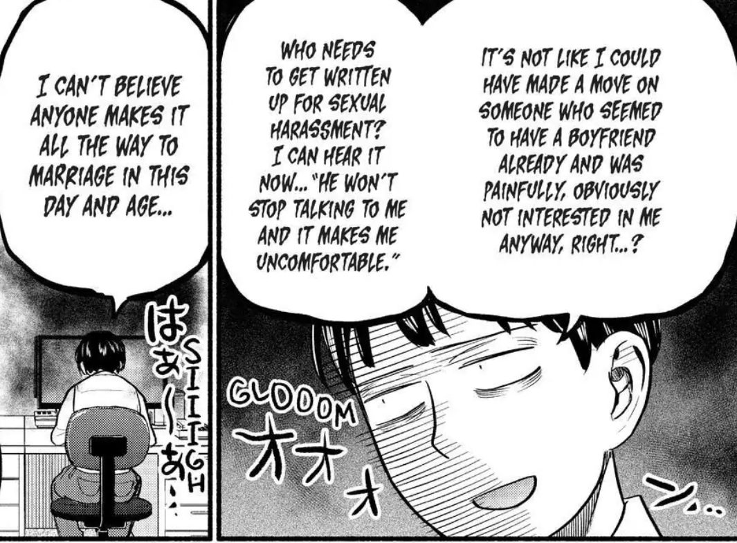 Sex should be normalized in seinen romcoms.I’m not saying it has to be explicit, but as an adult nearing 30 it’s hard to go back to reading a romcom for adults (in theory) where nothing happens for 200 chapters, only for the manga to end with a hand-holding scene. You're lucky if there's even a kiss.I’m just as much of a purityfag as the next guy. I’m not saying that female leads now have to be used goods, or that the protagonists should just be sleeping around with other people. It's just that sex is a normal part of a healthy and wholesome relationship. It can even serve as character development and in the worst-case scenario, it's at least sexier than the protagonist falling over the girl's breasts for the 256th time.That's the one thing the second half of Kaguya-sama did right. I think Tokyo Ghoul is the perfect example without being a romcom.