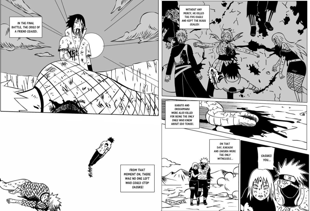 In this alternate ending of naruto sasuke kills him and kills all 5 kages in order to take over the ninja world.