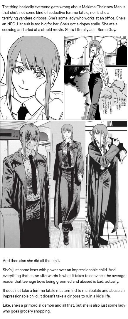 >>287487061She's the real victim here. Do you think she WANTED to like Denji?