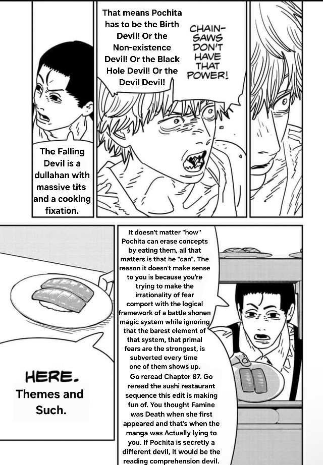 >>287503711>>287503770Not to mention, we have no idea if all of the weird Devils that Pochita erased are back.Like the alternate ends to life, the sixth sense, and so on.