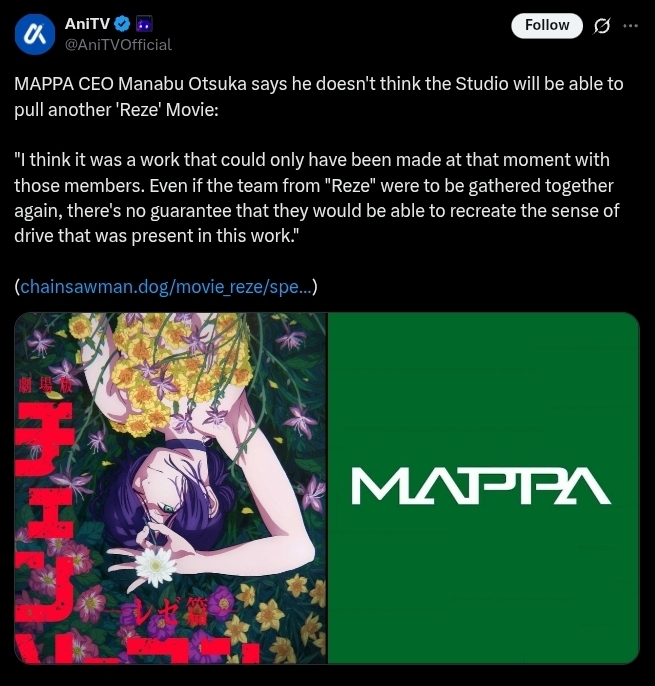 All fujimoto had to do was bring Reze back, part 2 wouldn't have happened like it did if he did that.