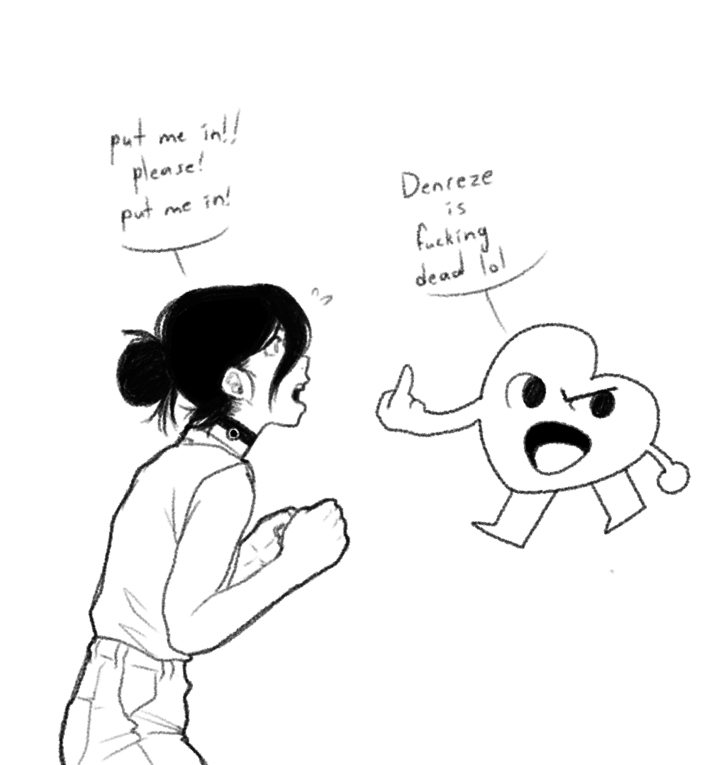 >>287486305>RezeDon't bring her back during the Makima fight since it opens a massive plothole for Denji and her not reuniting >AsaHave her and Yoru reconcile and go out in a blaze of glory against the BugChads after Denji gets oneshot and eaten