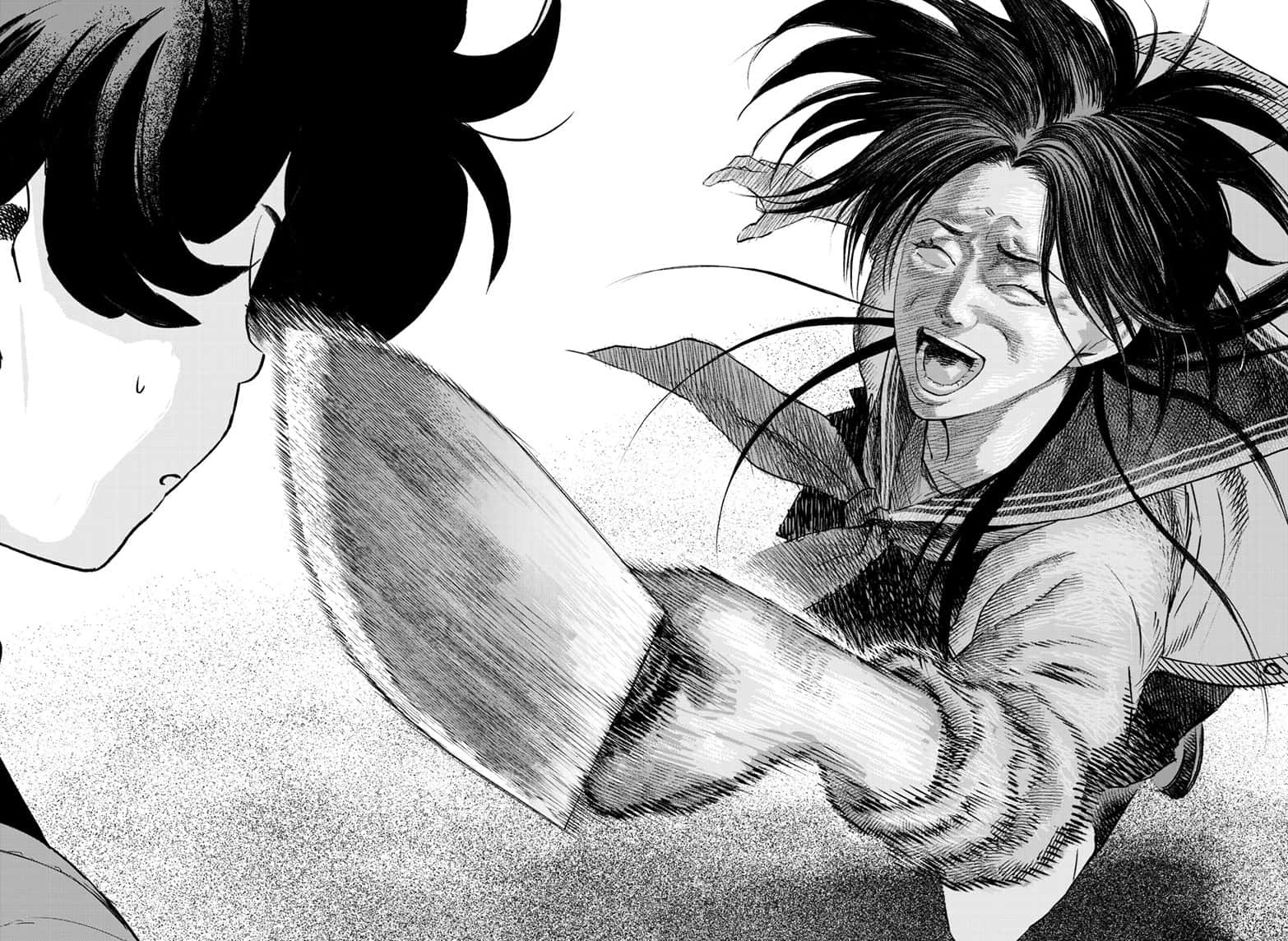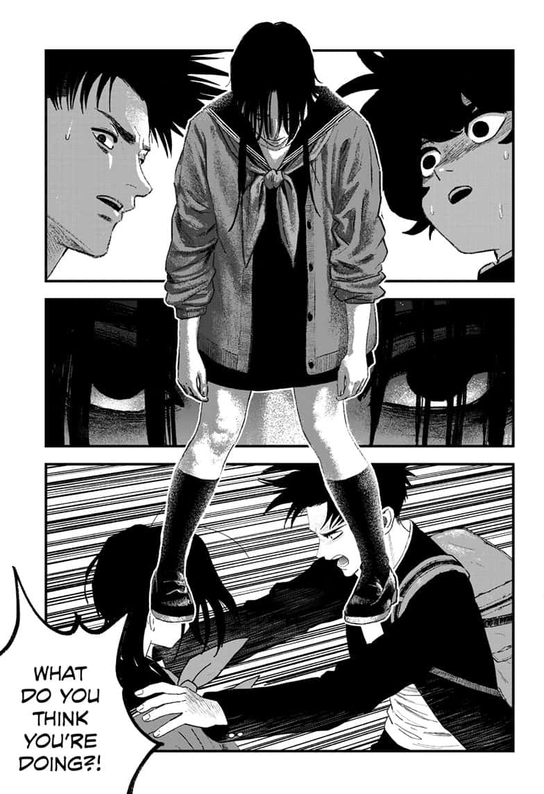 >The hags grabbing hold of Kokudo's weightless body