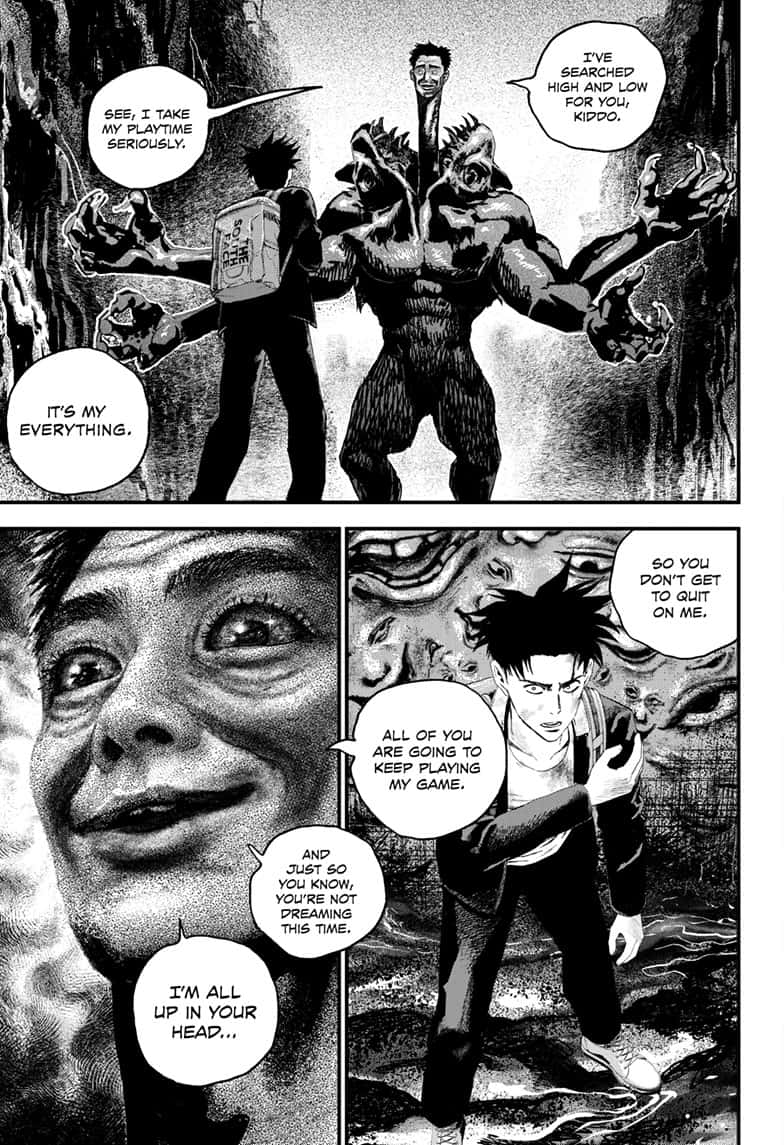 >>287497301No, making them le twist villains is too convoluted and retarded. The intruder is pretty much real (Kokudo saw him in the park in one of the chapters) and it's his powers which produce hallucinations. He even goes into details here >>287496337 explaining that because he entered his dreams, he is "hooked" to him. The FWA just saw the guys in trouble and decided to help. Some anon actually pointed out the obvious red herring in the last thread. Whoever the FWA wanted to crush was the one attacking the MCs