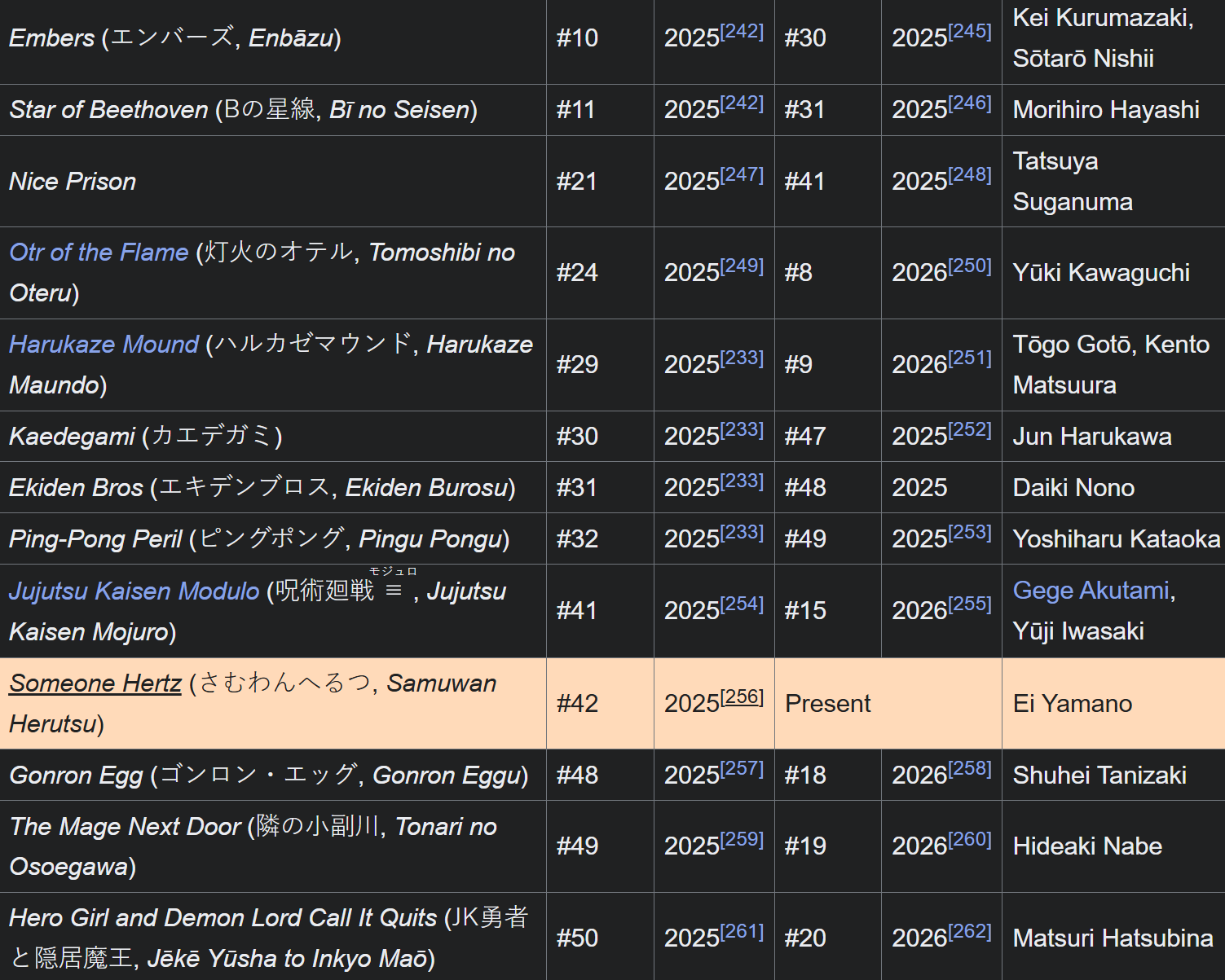 >>287518984HxH isn't even listed as serialized manga IIRC. At least BC and Ruri are still there.