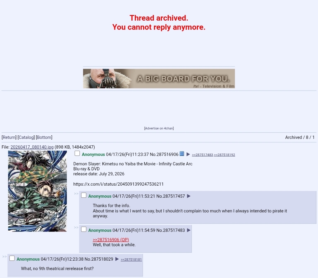 Why does no one cares about kny? They just announced the release date for the bd.