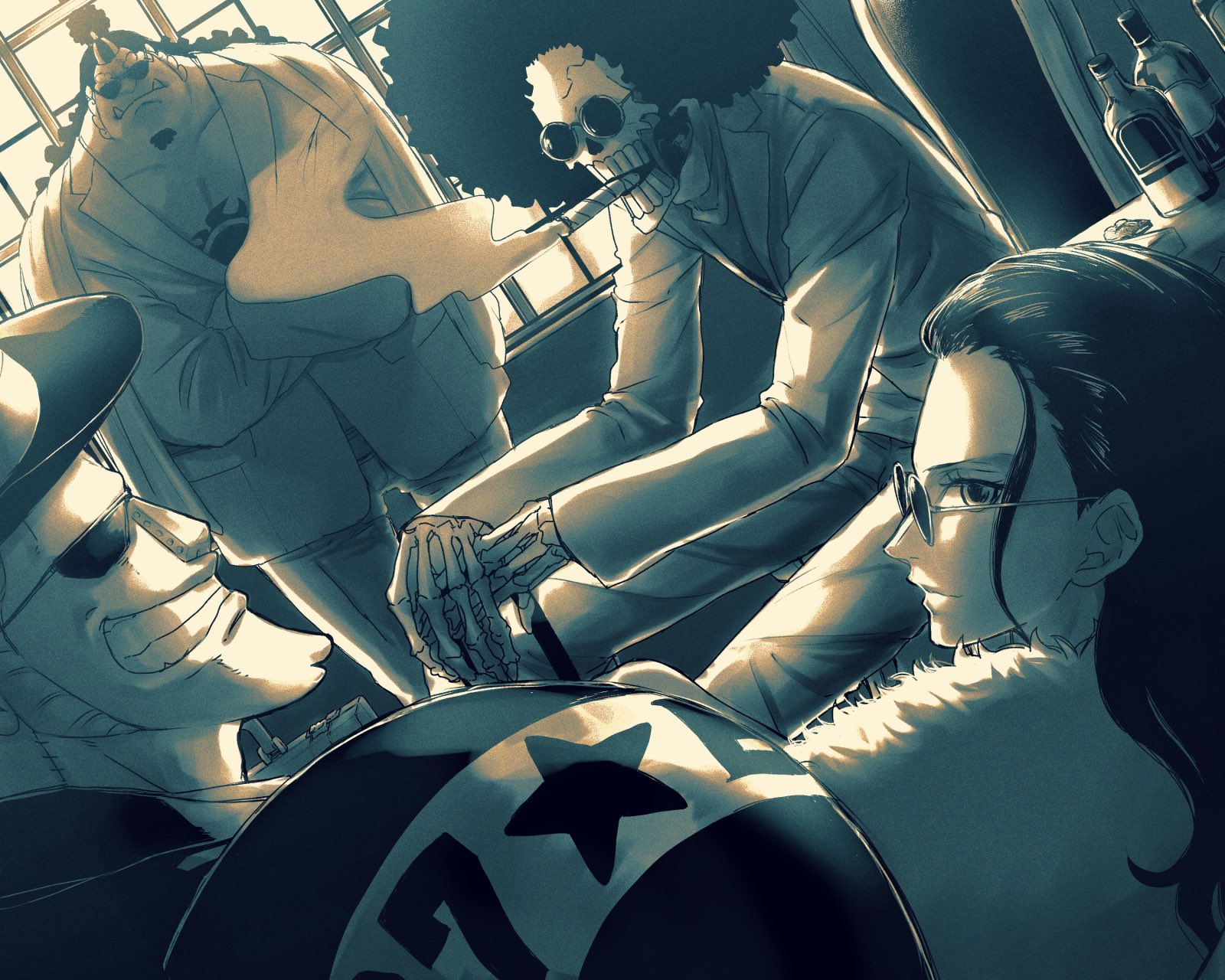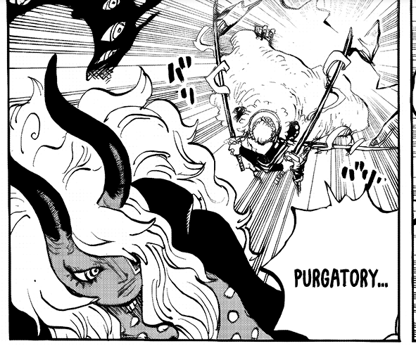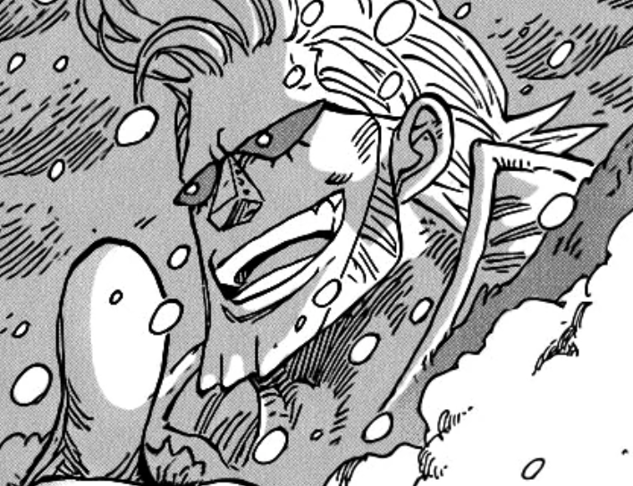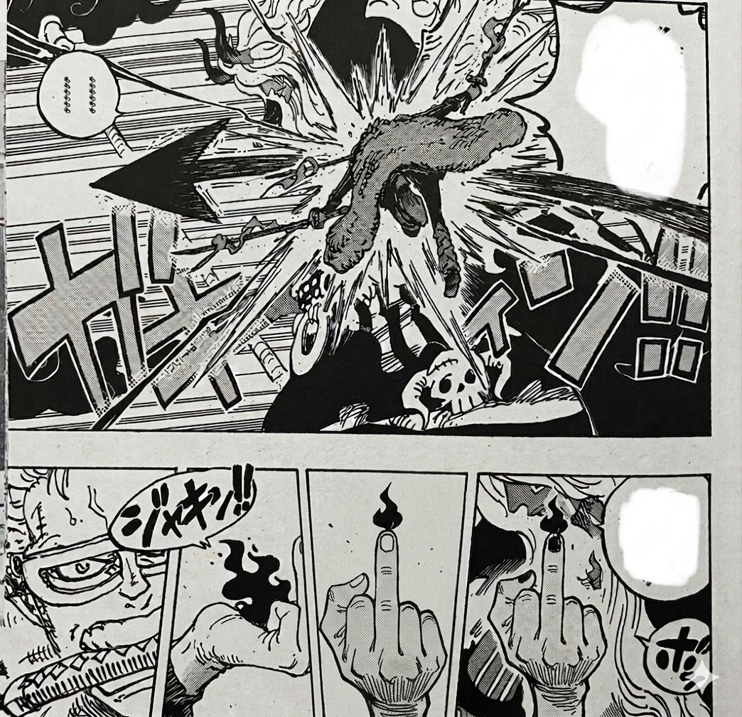 >Jinbei got one tapped in the explosion that happened between Imu and Sanji’s legs collidingHoly KWAB