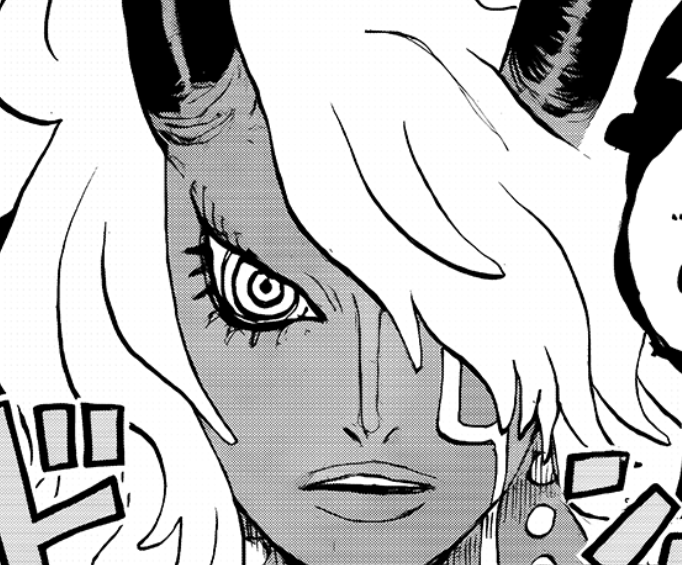 i kinda get the feeling that the black ring is the one possesing imus body and is the true blop body of the devil fruit.the staff looks like the one from enels cover story but the wing form and color of the character doesnt add up."Studying the paintings - the winged moon people of ancient times "