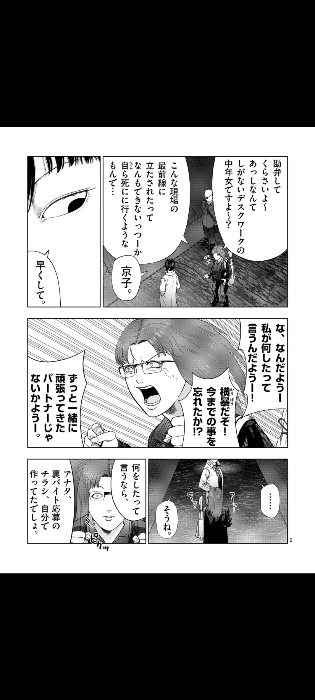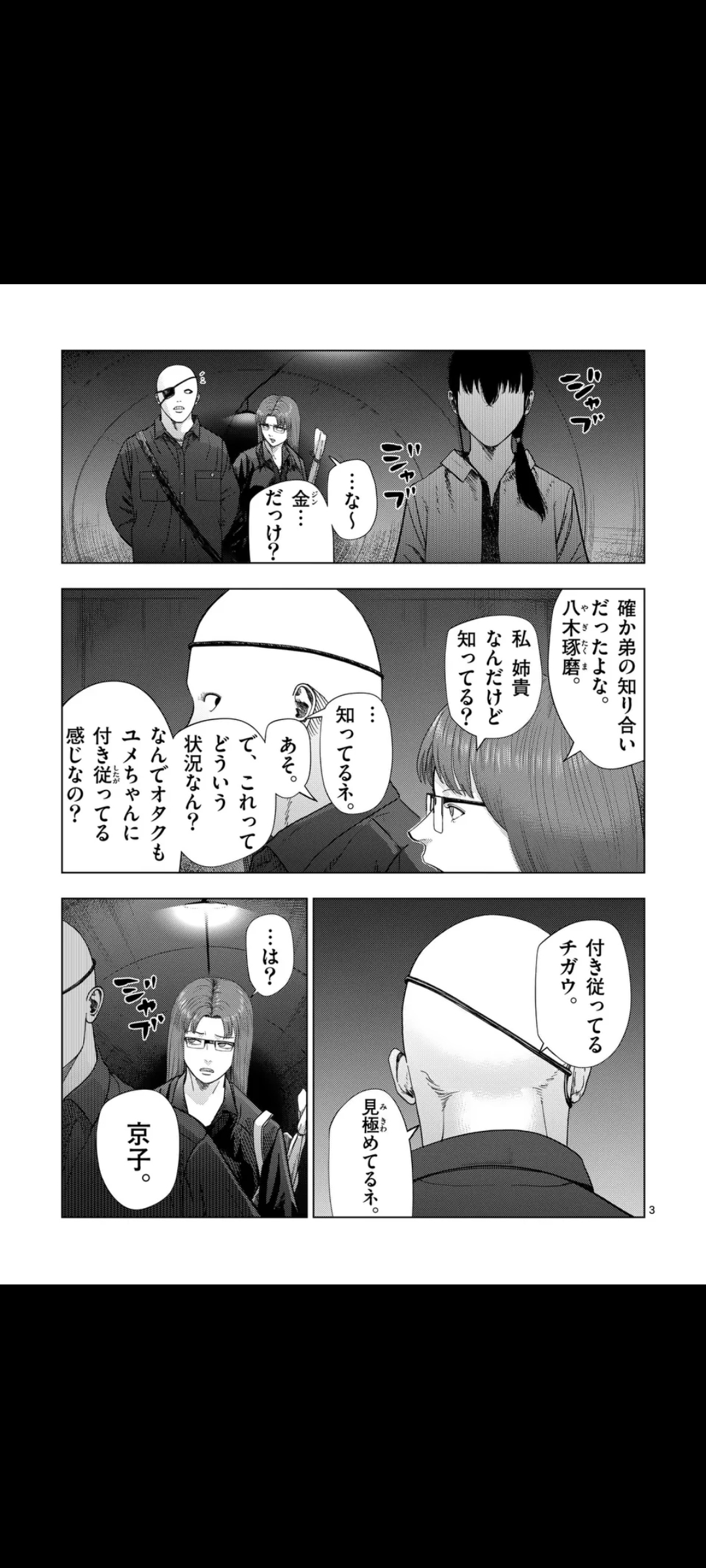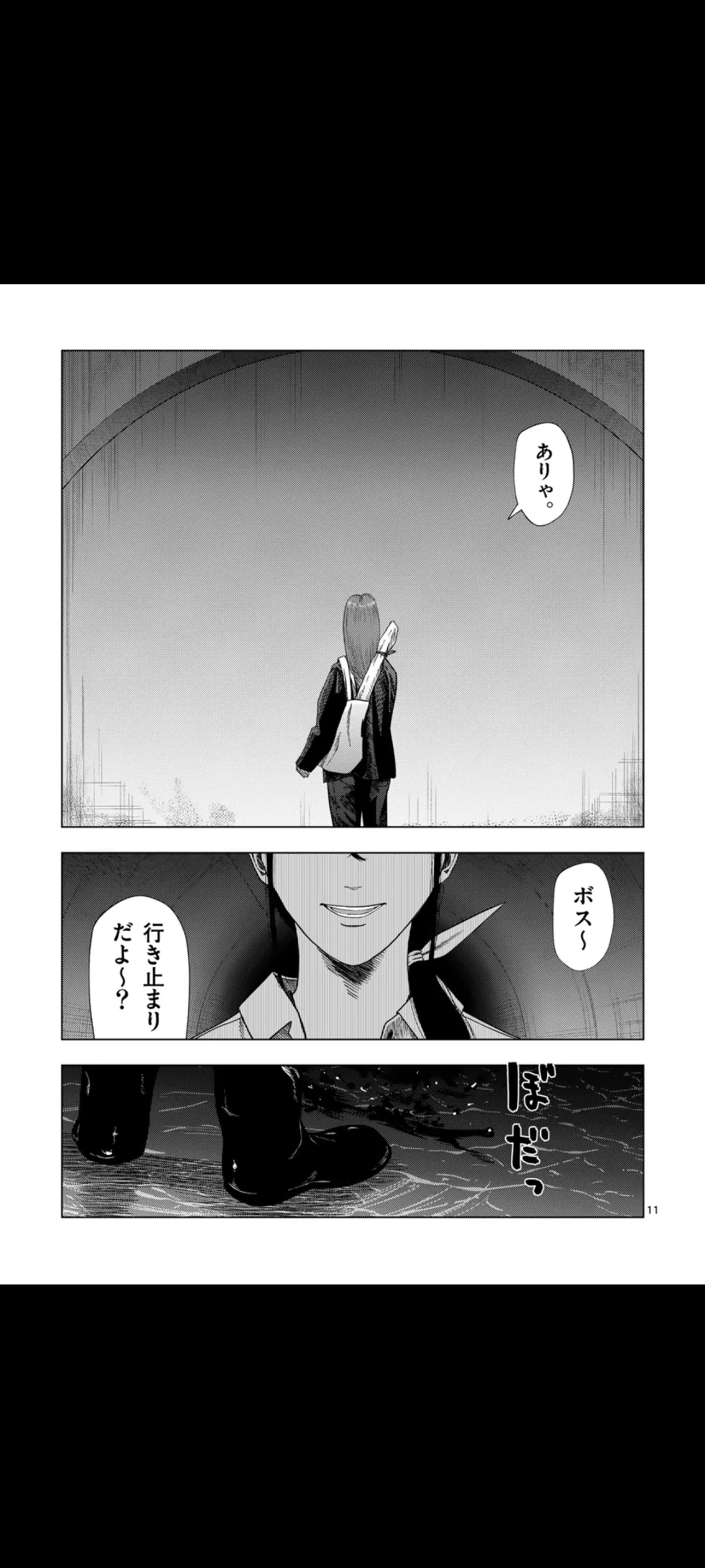 Summary time.We begin with the three looking down at a sewer lid, Akagawa still complaining that she doesn't want to go, but she still goes down anyway. In the spacious sewers, Akagawa calls to Jin, who she recognizes as an acquaintance of her younger brother, Takuma Yagi. She asks him how things became this way, why does it feel like he's taking orders from Yume.He replies that he's not taking orders from her, just watching her until the end.Yume interrupts before he can explain further, teling Akagawa to go on ahead, but she refuses, saying she's just a worthless desk jockey who can't do anything in the frontlines, but Yume doesn't care. Enraged, Akagawa asks Yume what she did to her to deserve this.Yume begins listing her sins: first, she makes all her recruitment fliers herself, so she always skims a bit of the real salary; she also lies about having exclusivity for certain jobs so people won't look them up in other brokerage places; she took money from Kuroiwa under the guise of rent; asked for a fee even when they met with clients directly; increased publication fees for clients while advertising Yume and Hama without giving them any returns; sold photos of them to strange fans of theirs; and also never paid back the money she gave her for coffee.Of course, she forgives her for all that, so she'd better go on ahead. Akagawa obliges. At the same time, she tells Jun to deal with the things behind them. She tells him something more, but we don't hear it.Yume follows behind Akagawa, telling her that she wanted her to go on ahead so she wouldn't get hurt by those things. She's a very important, very necessary person to Yume, so she can keep going forward. She then tells Akagawa to go right, only for them to come across a dead end.Back to Jin, he finds out that those things we just sewage wearing human skin, so weak in fact that any regular human being could deal with them. But he gets the feeling something much worse is hiding somewhere nearby.