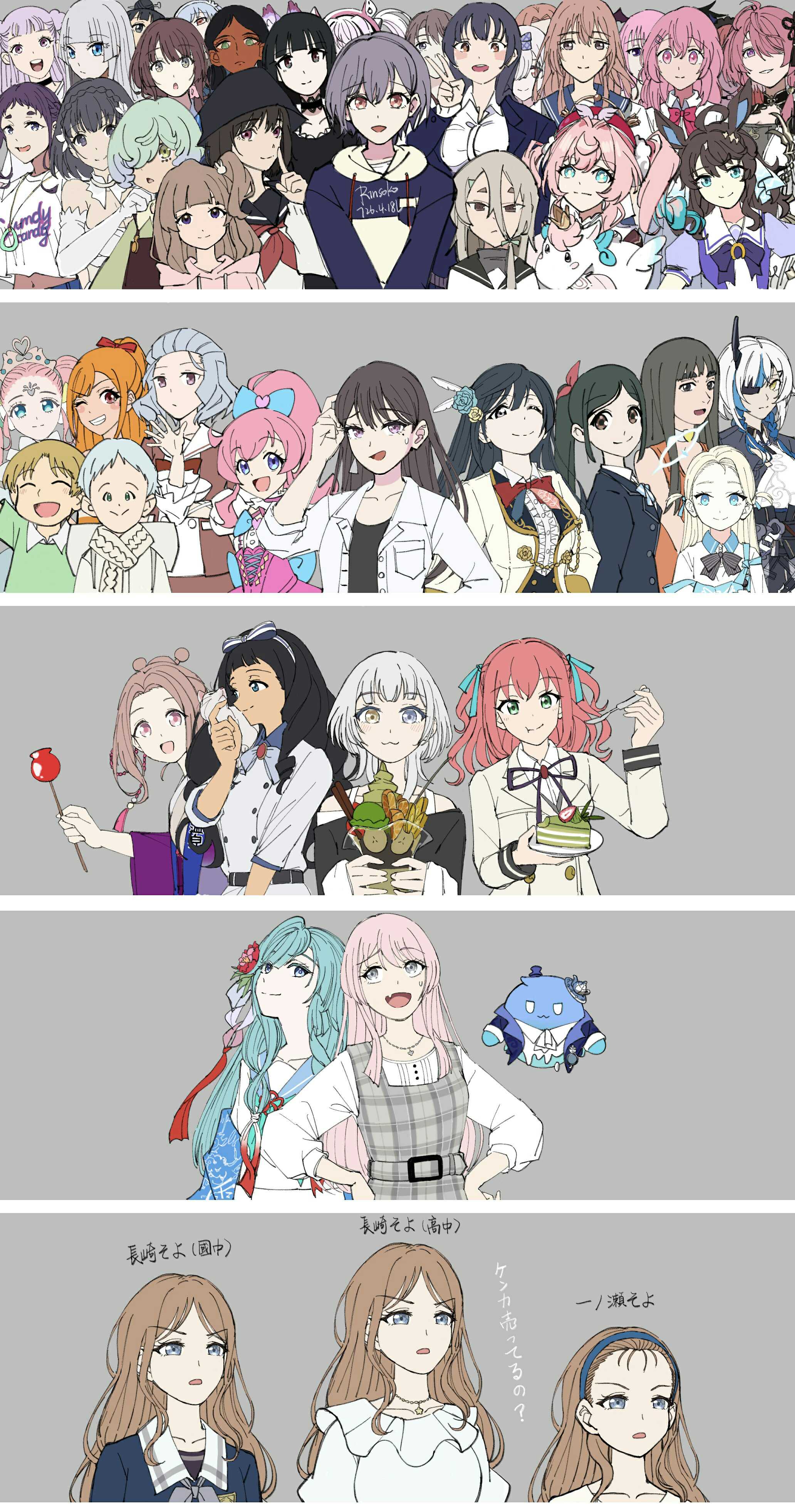 >>287518575Arale - Aya/KokoroYuno - Arisa/TakiNonoka - Hagu/HimariRitsu - Sayo/RanMiyako - Misaki/Umiri