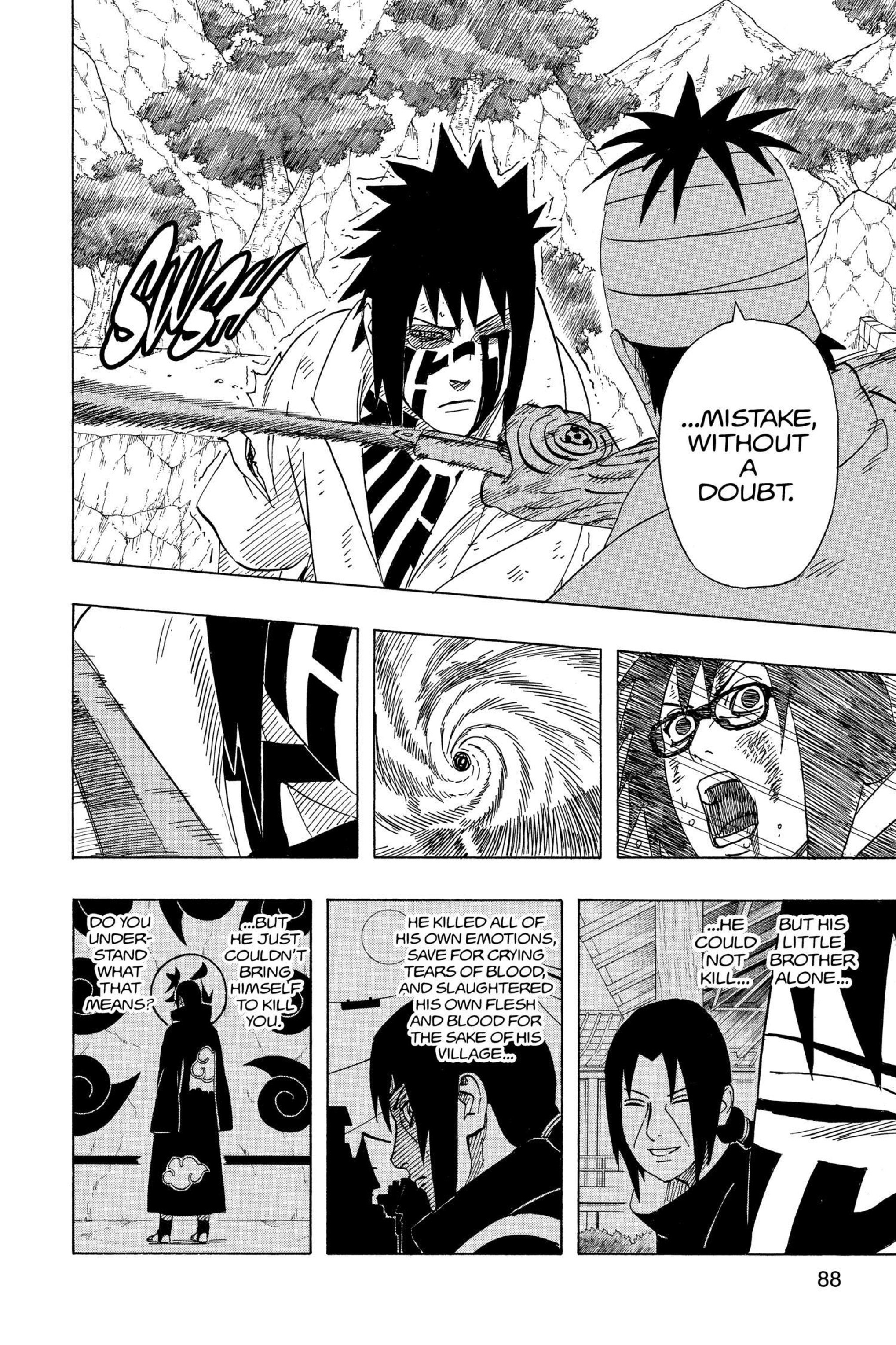 >>287518986>Why Itachi, why was it necessary for you to save the life of such trash?I dunno, why is it necessary for you to monologue here instead of ripping off Sasuke's head as quickly as possible?