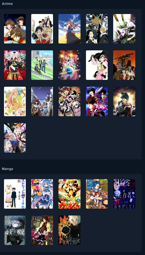 >>287528423Here's mine. Yeah, I'm an anime-only.>>287528623I switched to AniList because at the time MAL didn't have a setting to show English anime titles instead of Romaji. Similar to you, I don't feel like switching back even though MAL now has that feature too.