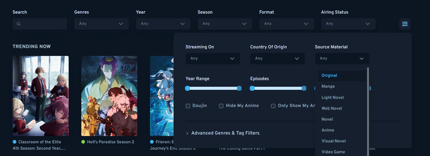 >>287533743What makes me dislike both sites is that there's no way to search for original anime