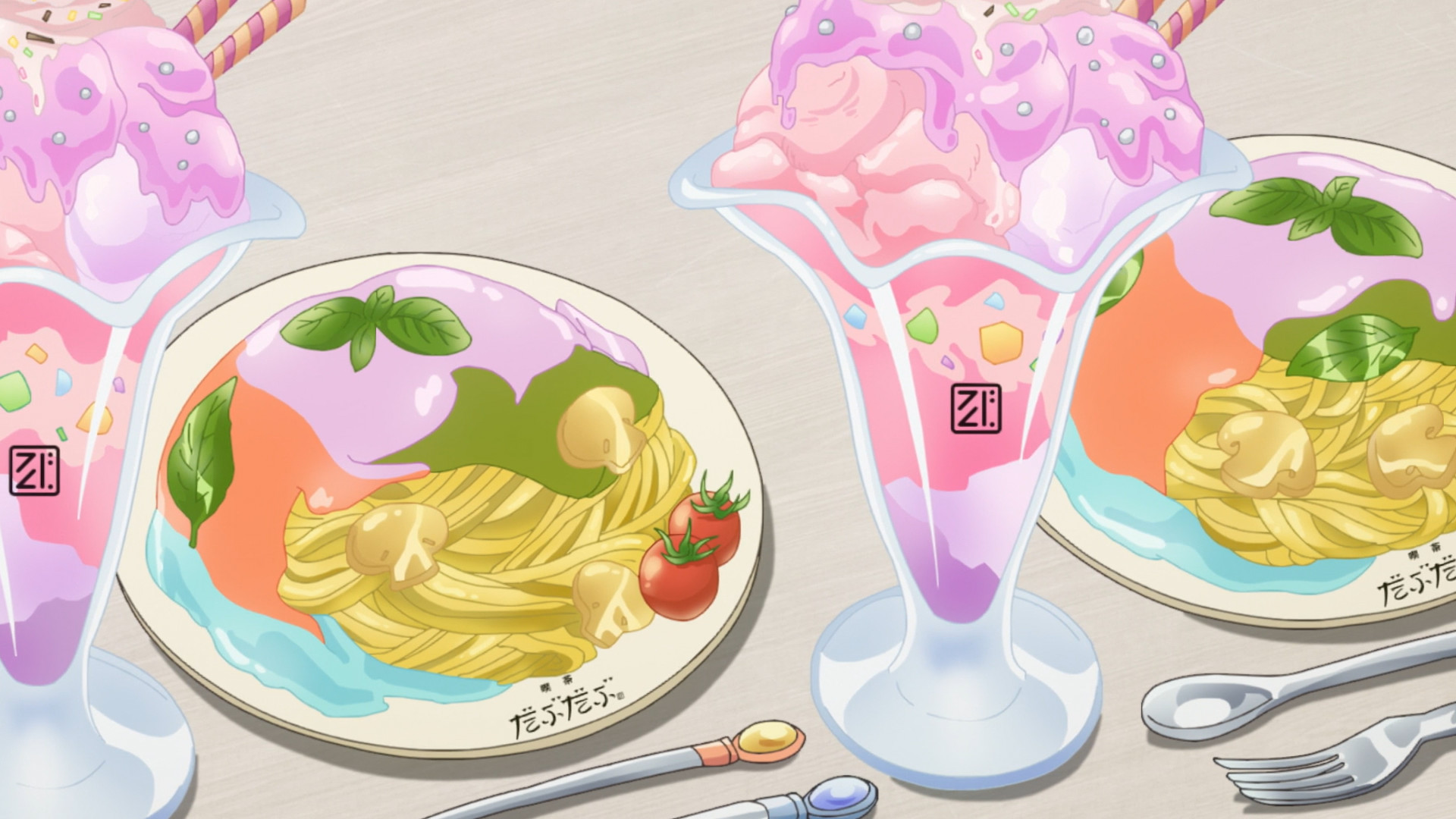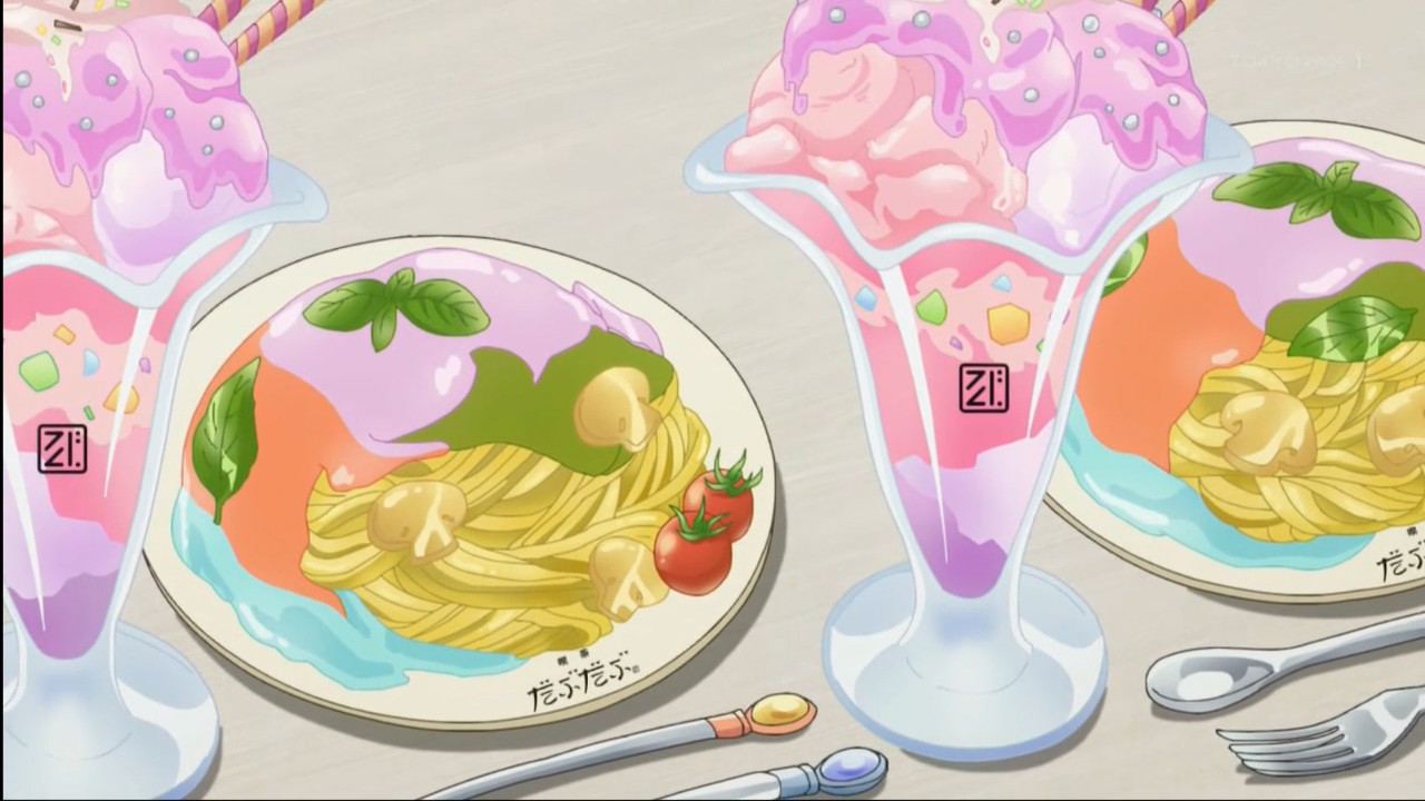 What the fuck is this? Pasta with pink candy jelly? This looks vomit inducing.