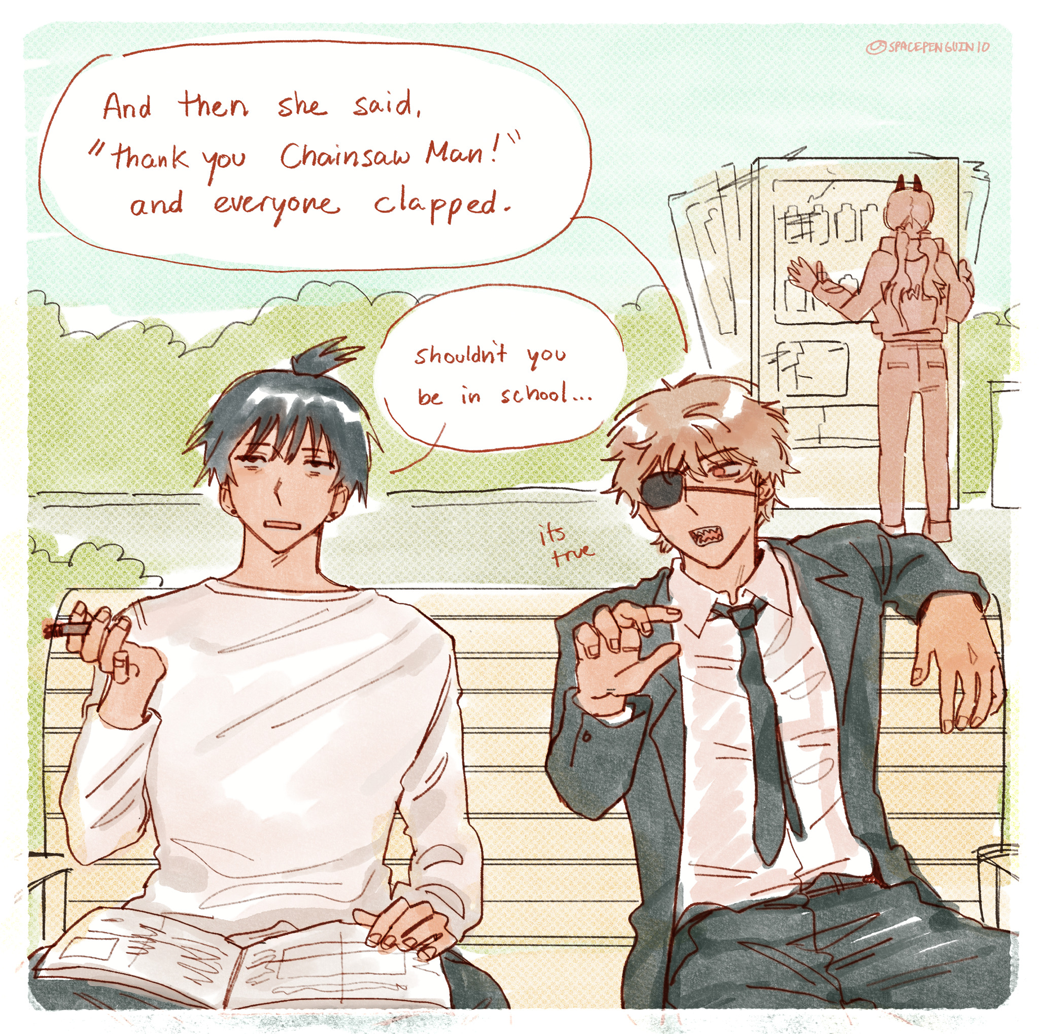 >>287548665To show all the people who Denji loved. >>287548747Denji comparing both Asa and Yoru to Power instead of any other girl he's been with is curious.