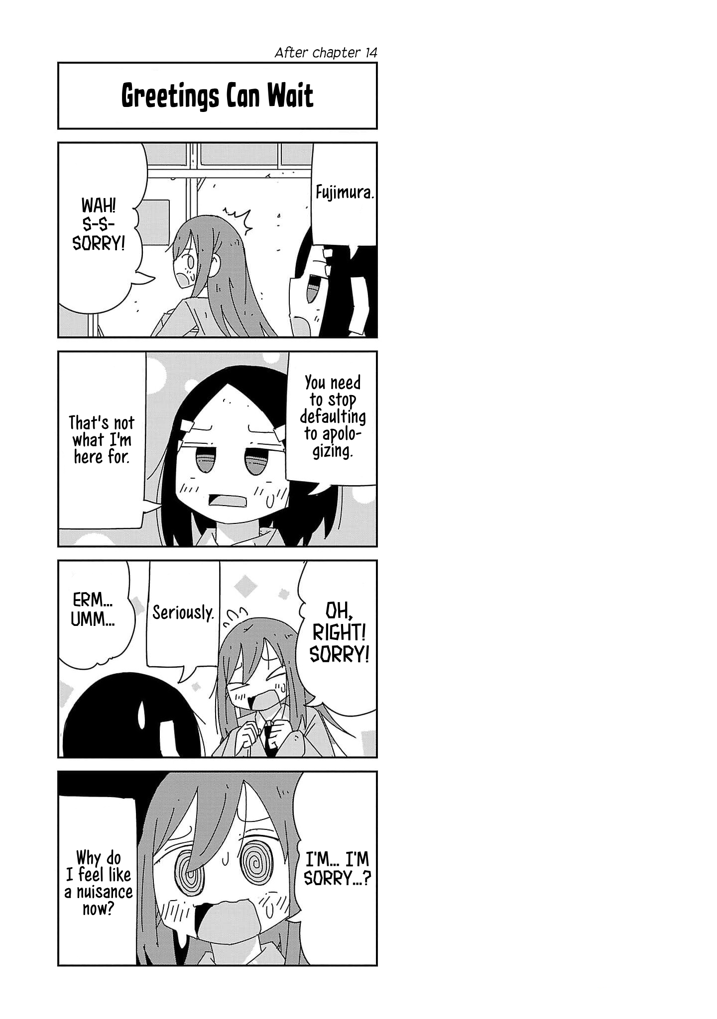 What was your reaction when reading through a manga and suddenly came to an abrupt end? Consumed by rage? Filled with confusion? Drown in disbelief and denial? Perhaps, plagued with uncontrollable laughter at the absurdity.Nevertheless, come. Relive, share with others, or experience for yourself the first time some of these short lived (maybe justifiably so) creations.Make valuable lessons be learnt. And never forget, the true ending was the friends we read questionably sourced Japanese cartoon drawings on a handicraft forum with along the way.The quest to discover the elusive mouth breathing technique is a concuss... Percussive one.>Pouring their blood, sweat, and tears into trying to reach the top of the wind ensemble world... Is totally not their jazz.>This is a story centering around Hagino, who just wants to enjoy her youth; Kiritani, a newbie to the wind ensemble; and all the other members of the club who are full of personality... Talking nonsense, goofing off, falling in love, and occasionally saying they want to quit the wind ensemble!Chapter 9 & 10 & 11 & 12 & 13 >>287456510
