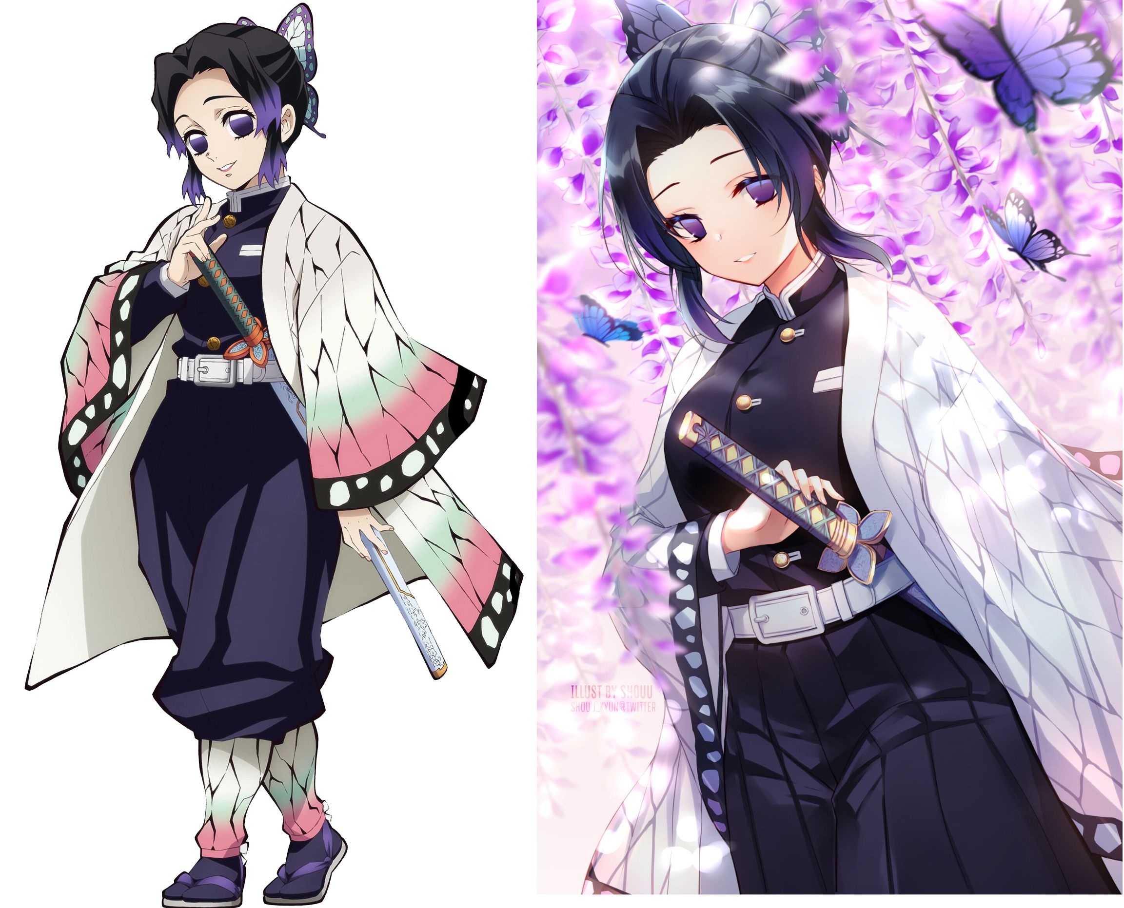 Requesting Shinobu Kochou teasingly showing off her butterfly-themed bra and panties.