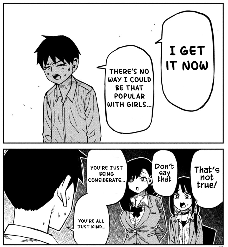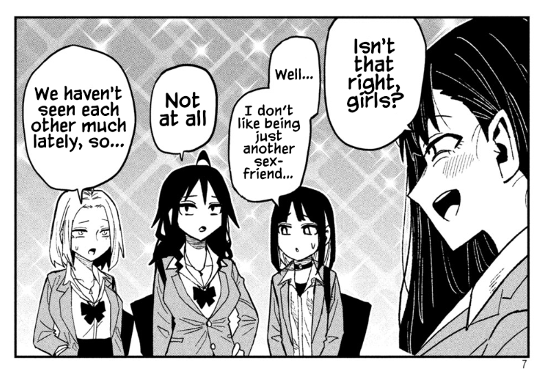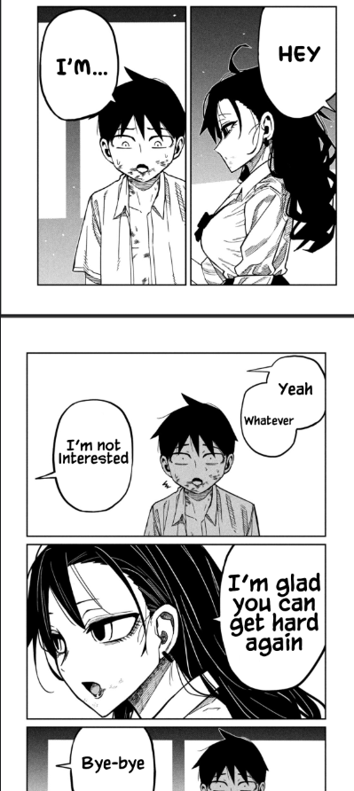 The issue is that the author can't justify Gotou interacting with the girls without him being a coomer. O.G. Gotou wouldn't be interacting with Prez nor Shige at all as he wouldn't want to hurt Agawa. He wouldn't have fucked Akito as he would be able to control his dick.