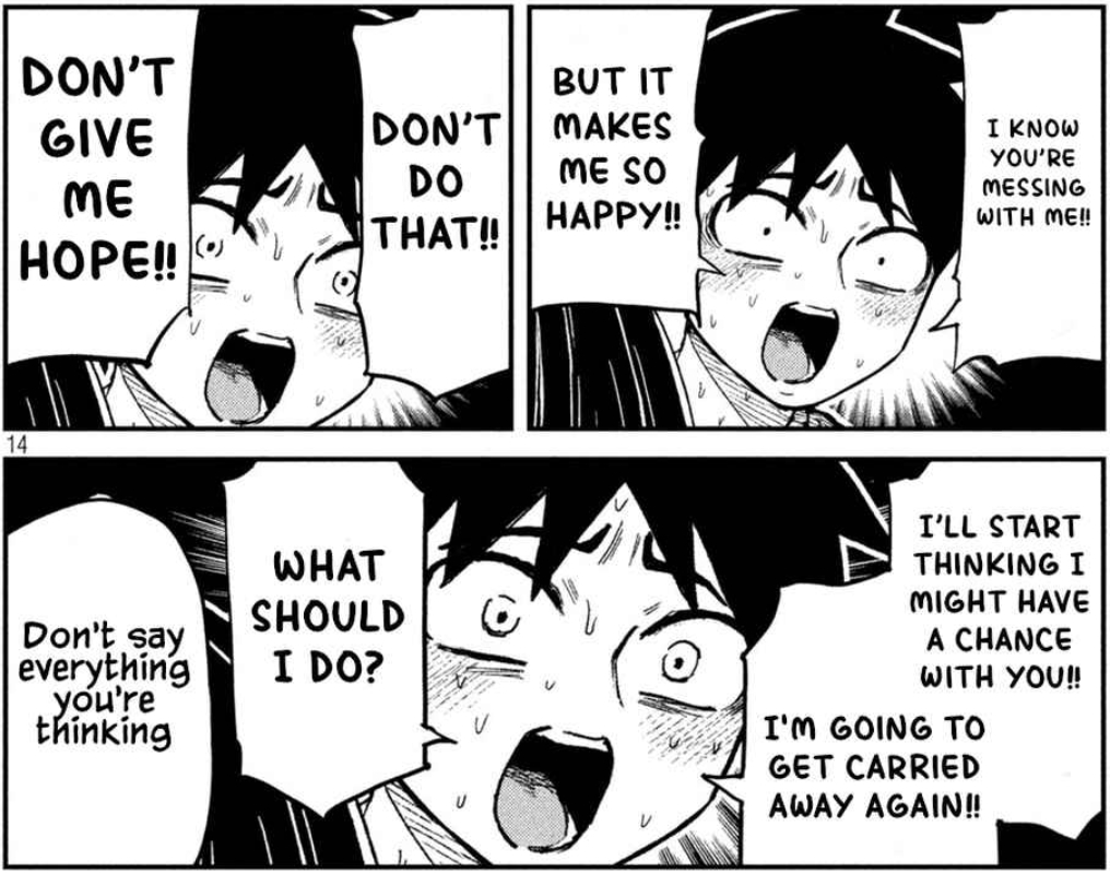 I'm just sad that Agawa was done dirty by really weird change to Gotou's character and she was basically relegated to nowhere. The last few chapters with Gotou going back to being an actual person and Shige is some great course correction, but I still do like Agawa