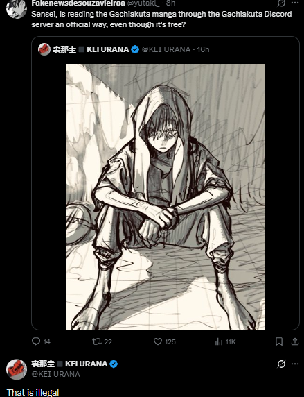 Mangaka Kei Urana speaks out against overseas pirates:>I’ve spent the past few days researching the circumstances in different countries, including financial situations.>I understand that for many people, pirate sites are the only way they can read manga.>I also understand that prices can be higher overseas.>I’ve even seen people saying, “Don’t bring this issue up.”>But if we do not speak up now, the value of Japanese manga and creative works, built through the sacrifices and relentless efforts of those who came before us, will be wasted.>I’ve also seen people say, “Reading for free doesn’t hurt sales.”>That is not true.>“Free” lowers the value of things.>Once people grow used to getting something for free, they stop looking toward legitimate versions.>(I also understand that people who truly love a work will support it properly.)>We pour ourselves into creating so readers can enjoy our work.>Compensation matters, of course, but more than anything, I do not want to see its value diminished.>To help people who cannot afford to buy it, or who do not have access to it, enjoy these works, Ando and I have been discussing this for a long time and exploring many ideas. I cannot share details yet, but we are working on it.>Publishers are making efforts as well.>I’m sorry it is taking time.>But please stop hurling accusations like, “You are racists,” or saying misguided things like, “Piracy is free promotion for you.”>We will continue doing everything we can so everyone can enjoy manga.>And I ask one thing in return: please try to understand our perspective and our culture as well.
