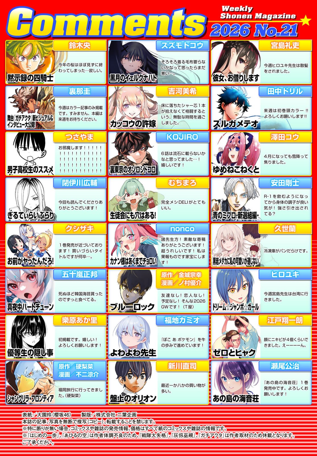 Issue no. 21, 2026Color pages for Four Knights and Gachiakuta