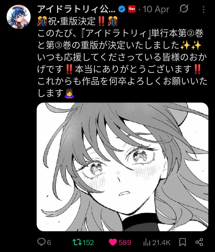 >>287618296>The series just got a reprintI can name multiple Magazine/Magapoke series that got a reprint and still got axed.