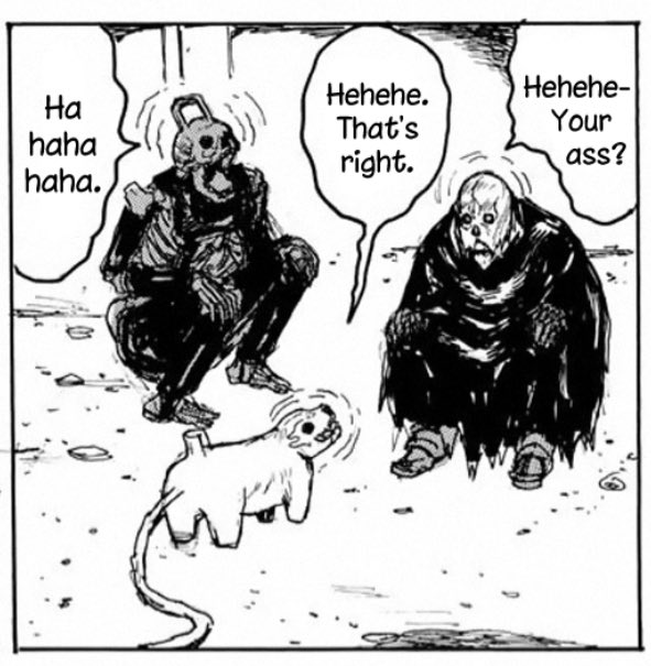 >>287634580>After the baseball and lizard reveals, the Blue Night happens during which sorcerers can do their version of marriage but it can also be mongol style "forced abduction marriage". We learn that Shin was a half N-word (ningen) and lived in The Hole. He killed the brave people who protected The Hole from sorcerers before he left for the sorcerer world. Kasukabe helped him unlock his edgy sorcerer powers. After he entered the sorcerer world, he had still rotten arms from his experiments on his arms. He meets a young Noi in plate armor who heals him and he thanks her by giving her brain damage by hitting her in the head with his hammer.>Later on Shin becomes En's enforcer first, while Noi still trains to be a devil. Two men want to abduct them and make them their "partners" by force. Shin gets mortally wounded, Noi heals him and loses her devil training. Later these two same men - who were explicitly killed in the flashback - are still alive and try to do the same during The Blue Night. Shenanigans ensue, both of them get taken out after they actually win their 1v1s vs Shin and Noi. As a byproduct of this fight, Risu is fully healed (initially En only resurrected his head and gave him a cyborg body) and is allowed to move around independently. The two guys who beat Shin and Noi are taken out with the help of Dorohedoro's new friends, piemakers.>Said piemakers help Dorohedoro again later, when he decides to rescue Nikaido... right, Nikaido and Dorohedoro go to the sorcerer world to... find the guy who made Dorohedoro a lizard. They kill an innocent taxi driver family man because they can't pay him, Nikaido tries to solo En and his whole mansion, loses, but En almost takes out his own family. During Nikaido's loss she gets hit with En's magic that he later on uses to teleport her back to his mansion, that's why she was forced to become his partner during Blue Night.