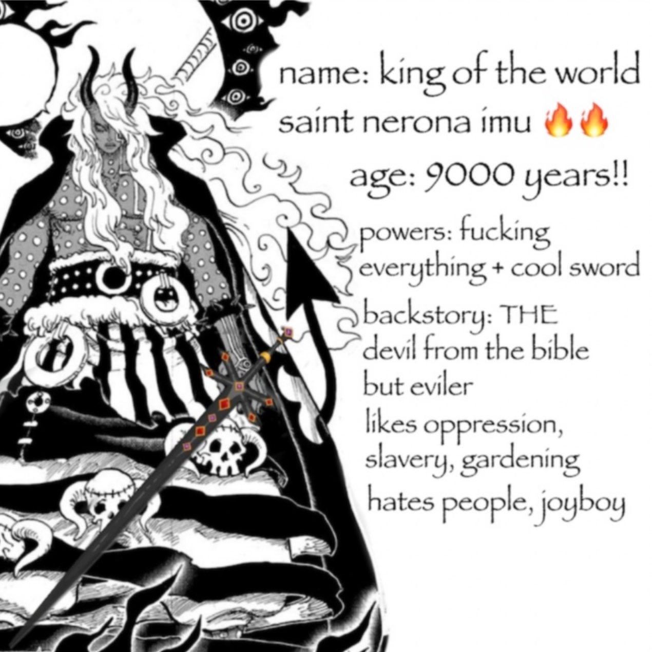 >>287629155>Luffy: "PK is the one with the most freedom">Imu: "Domination will make you happiest"Do we still believe Imu isn't the final villain?