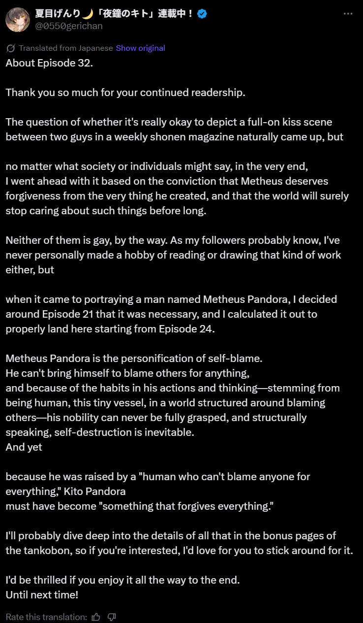 >>287645609I actually do get that he probably just ran out of ideas for the manga. It's not like he could've gone full battle manga at that point, and turning into mystery solving would have been weird.At least his series after, Kiss X Death, managed to run its full course on a different magazine. It's a shame his current one has been on hiatus since 2022.