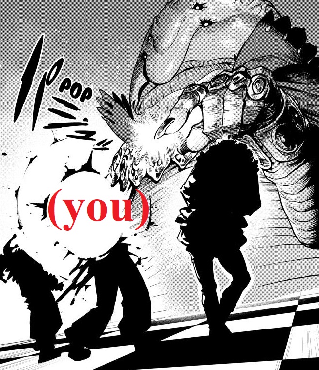 >>287652611>Ginbak beats all 9 other Demon Lords>Vuvu fully wakes up>HEN....SHIN!>No Chapter next monthYour response