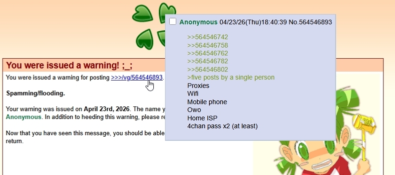 >>287674789>>287674778>>287674757>>287674697>>287653317>only a warningInteresting, right? Almost like when Troid doesn't see the posts you report the mods don't give a shit that you get told to stop shitposting and called a samefag.You crying and spamming reports is funny, though.
