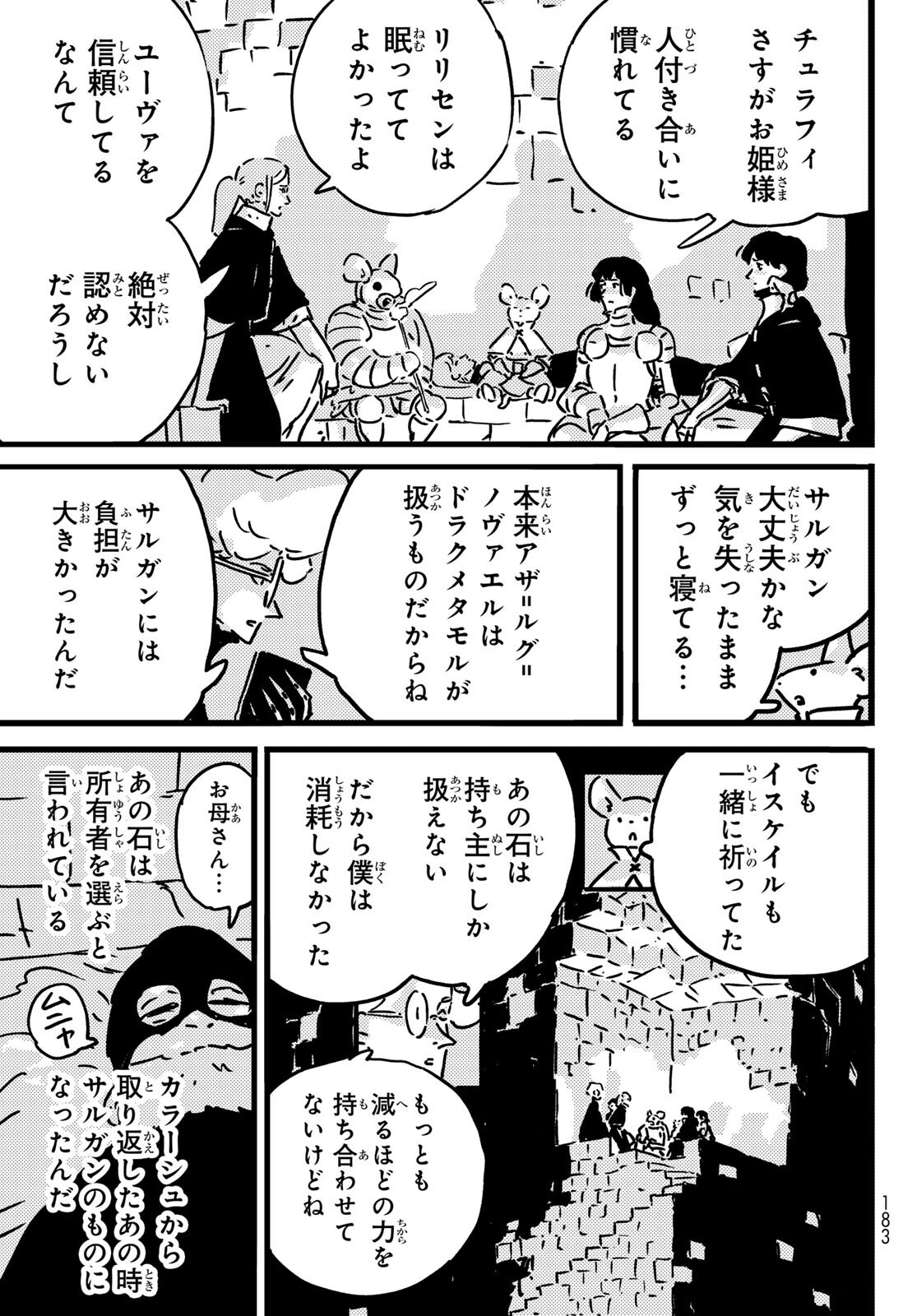 >命を繋ぐ石と心を結ぶ指輪>The stone that connects lives and the ring that connects mindsGreat chapter title lol. Gives you a sense of how much of an exposition dump this chapter is going to be.