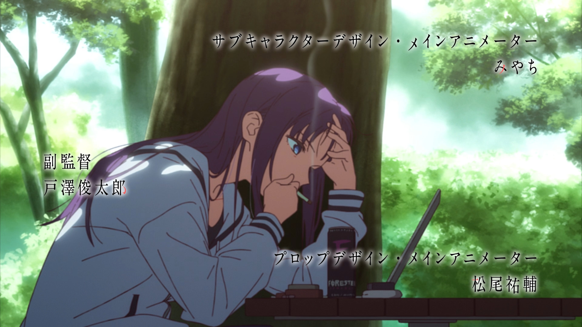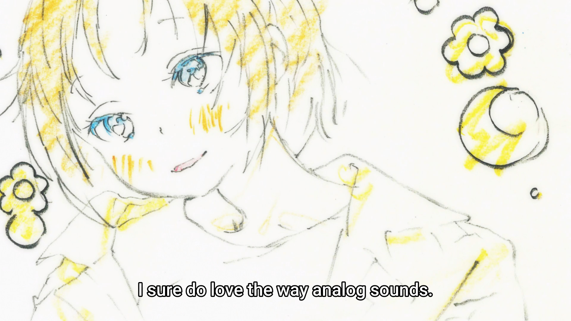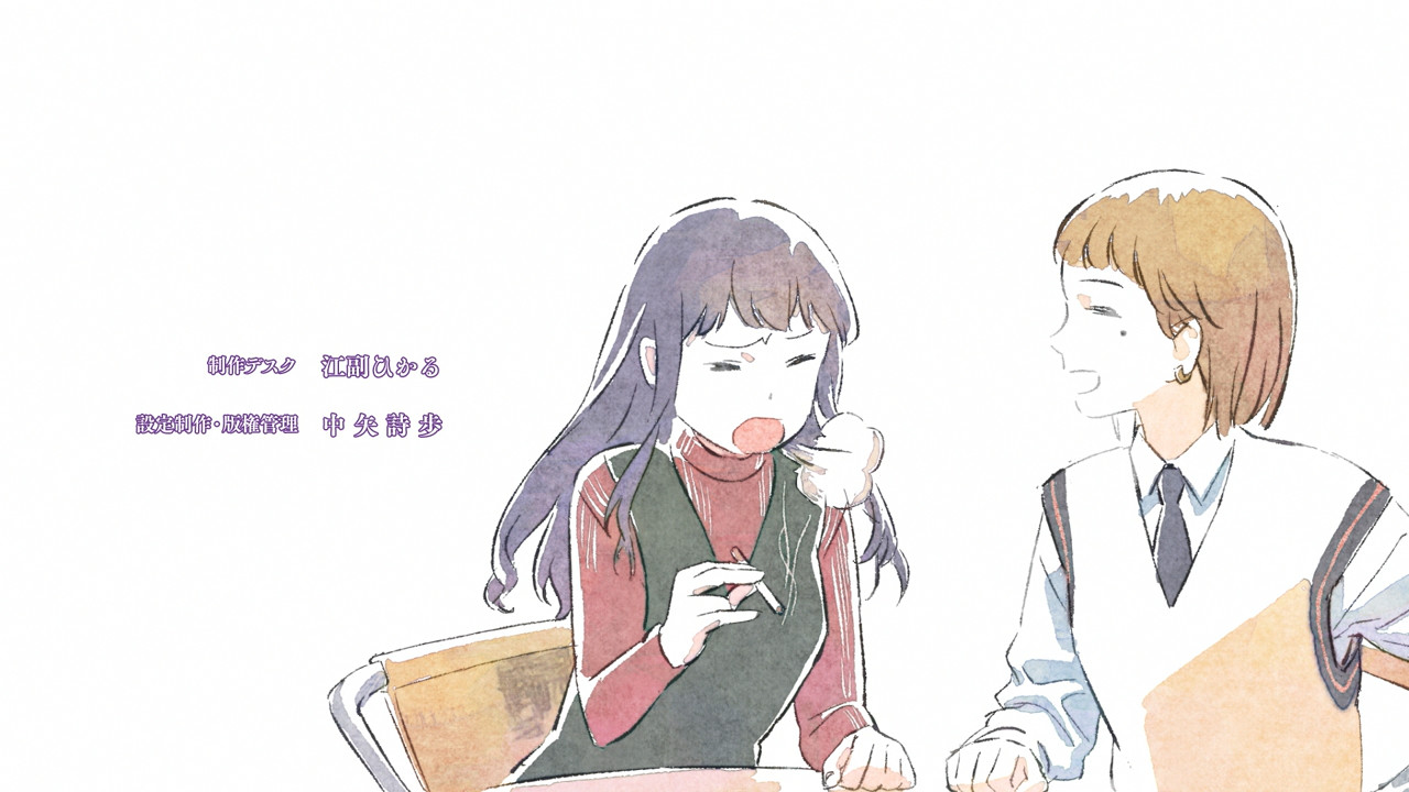 Trying to imitate SHAFT style automatically makes your anime more interesting and Oishi's style probably has the best visual aesthetics when you discard the time dependent stuff and focus purely on what's drawn, so I applaud it. But it's precisely because of that that I don't think the off model animation added anything to such a style. Also the Monogatari style backgrounds for the intertitles simply don't fit the aesthetics of this show, and a different looking background should have been used.