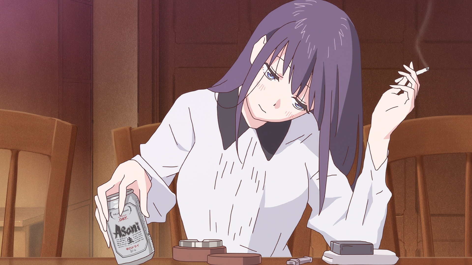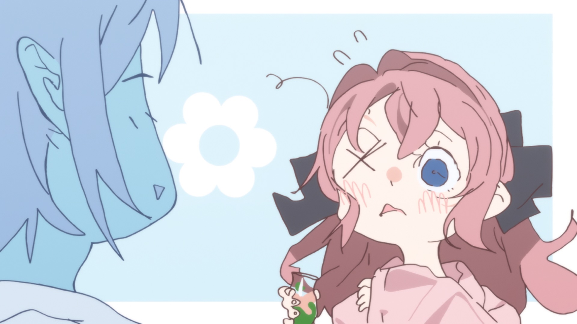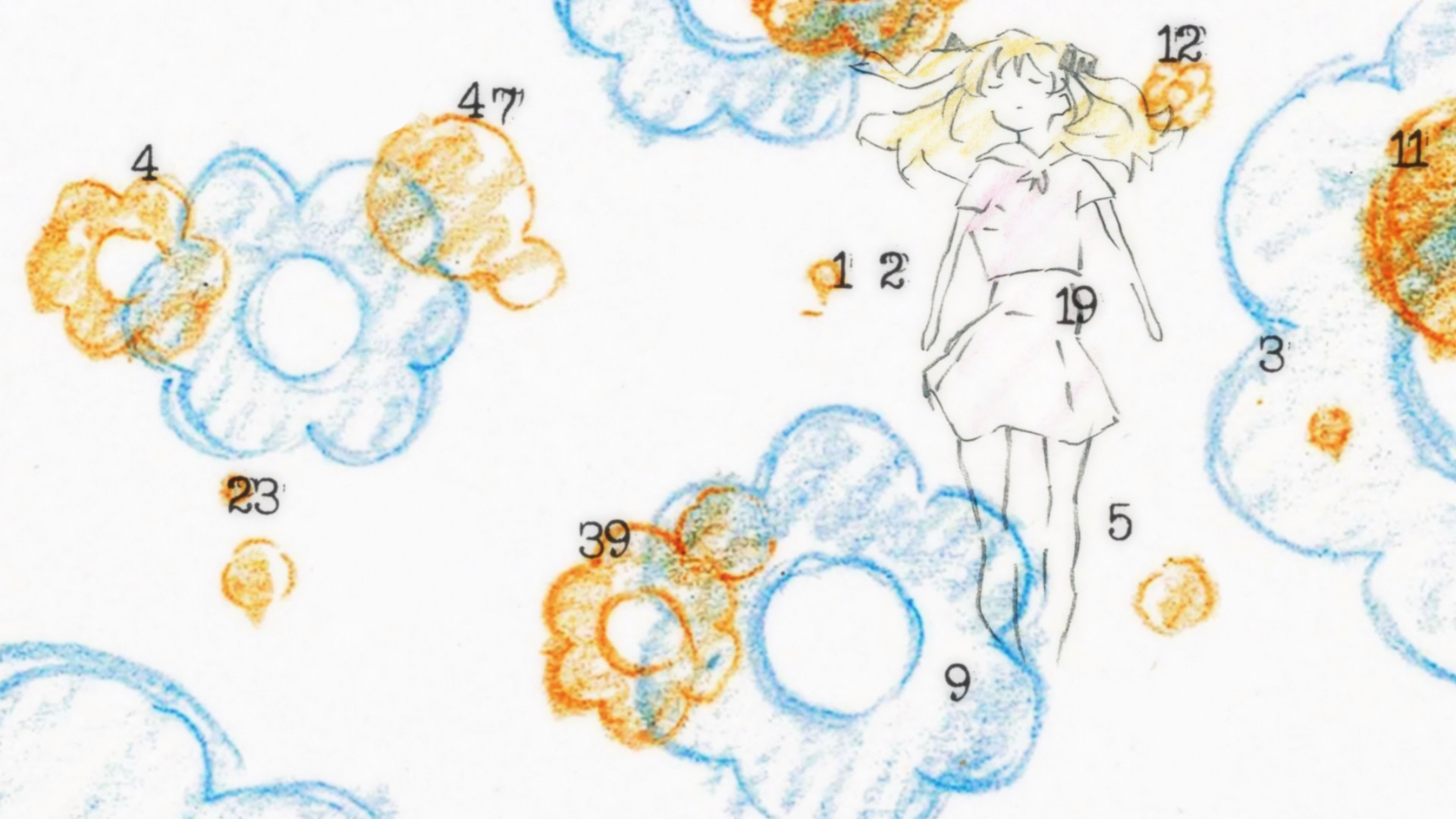 Trying to imitate SHAFT style automatically makes your anime more interesting and Oishi's style probably has the best visual aesthetics when you discard the time dependent stuff and focus purely on what's drawn, so I applaud it. But it's precisely because of that that I don't think the off model animation added anything to such a style. Also the Monogatari style backgrounds for the intertitles simply don't fit the aesthetics of this show, and a different looking background should have been used.