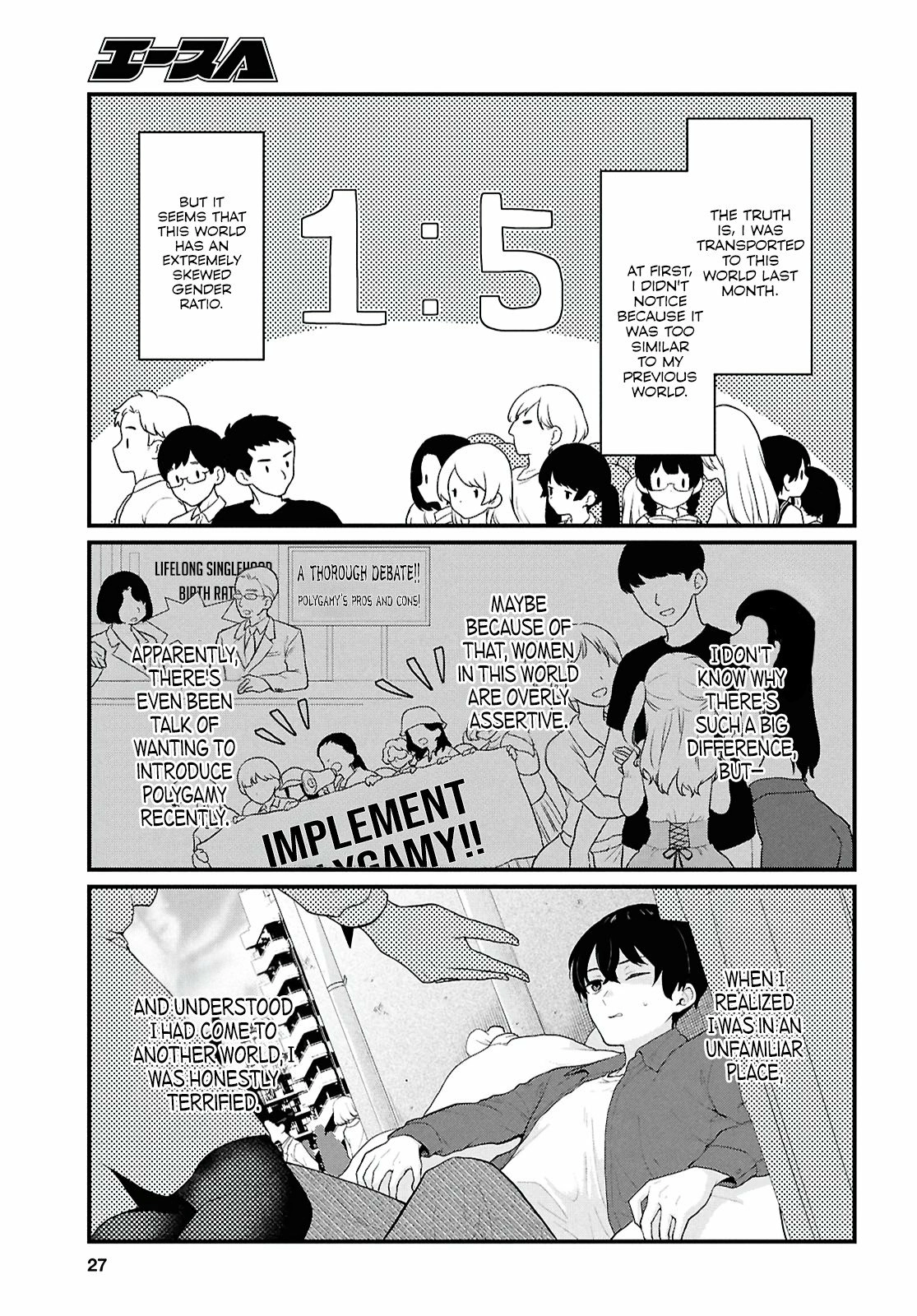 You can read the manga on MangaDex, it survived the purge. Just search "1:5 Sekai". The LN translation (which is superior to the WN and is the one you should read) is on the AthenaTL website. This chapter should be toward the end of volume 2.